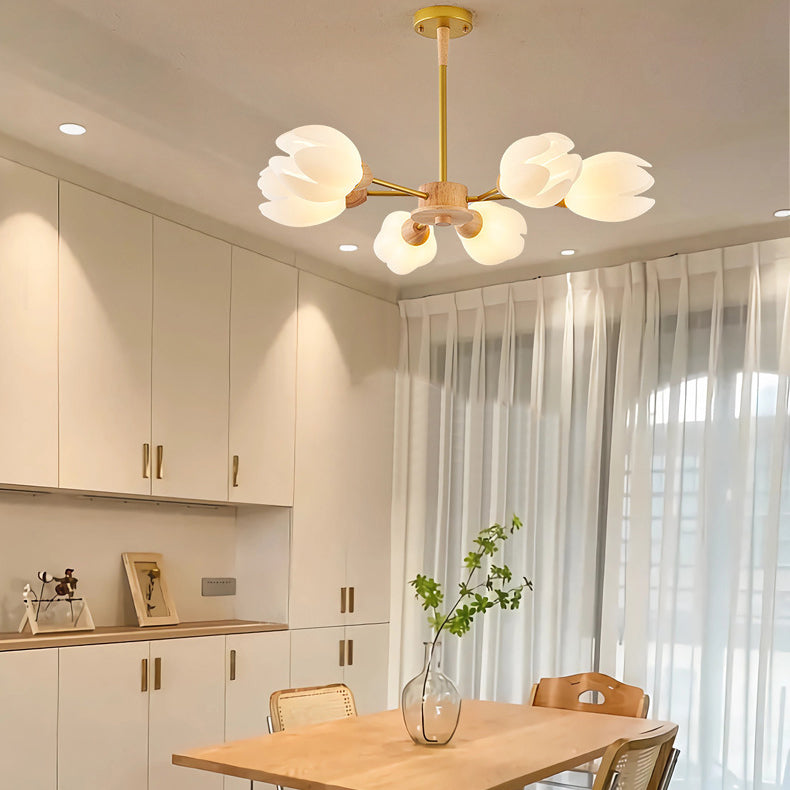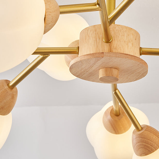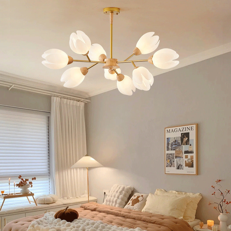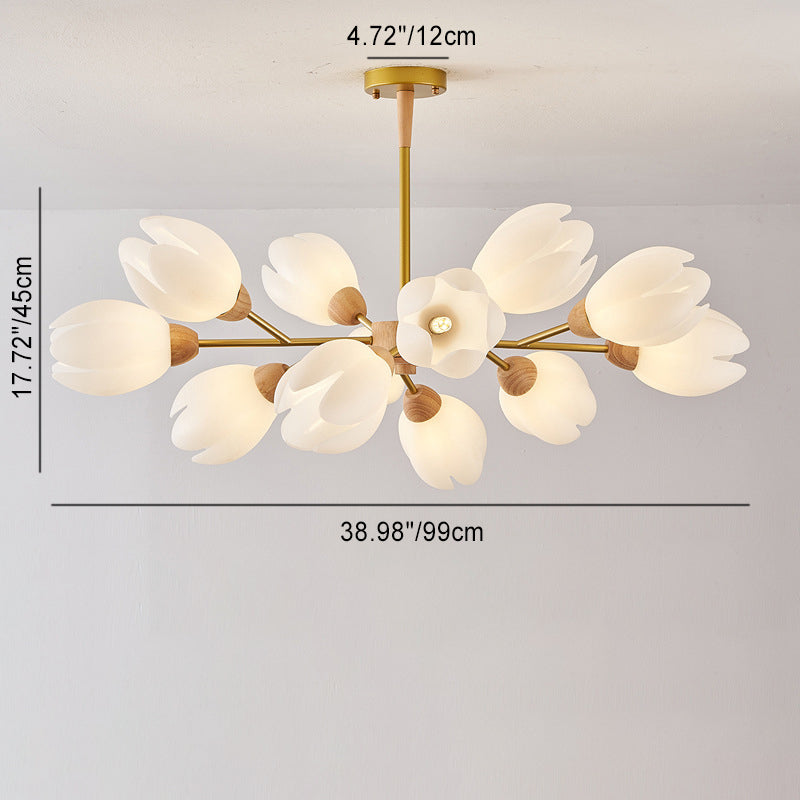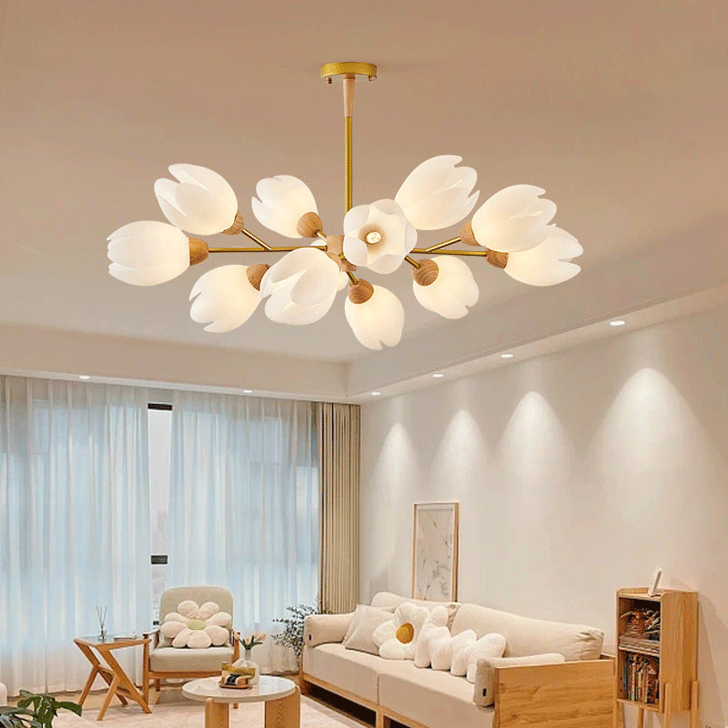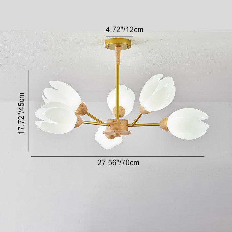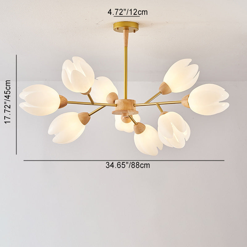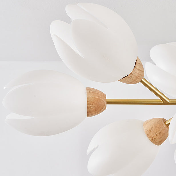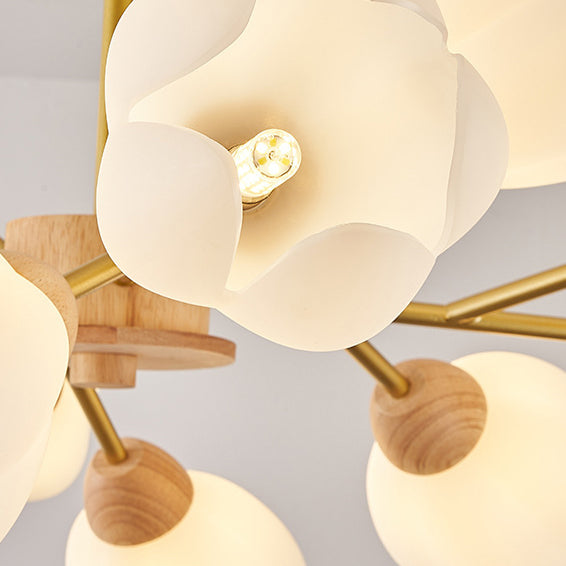 Modern Mid-Century Flower Shape Wood Rotational Molding 6/9/12 Light Chandelier For Bedroom