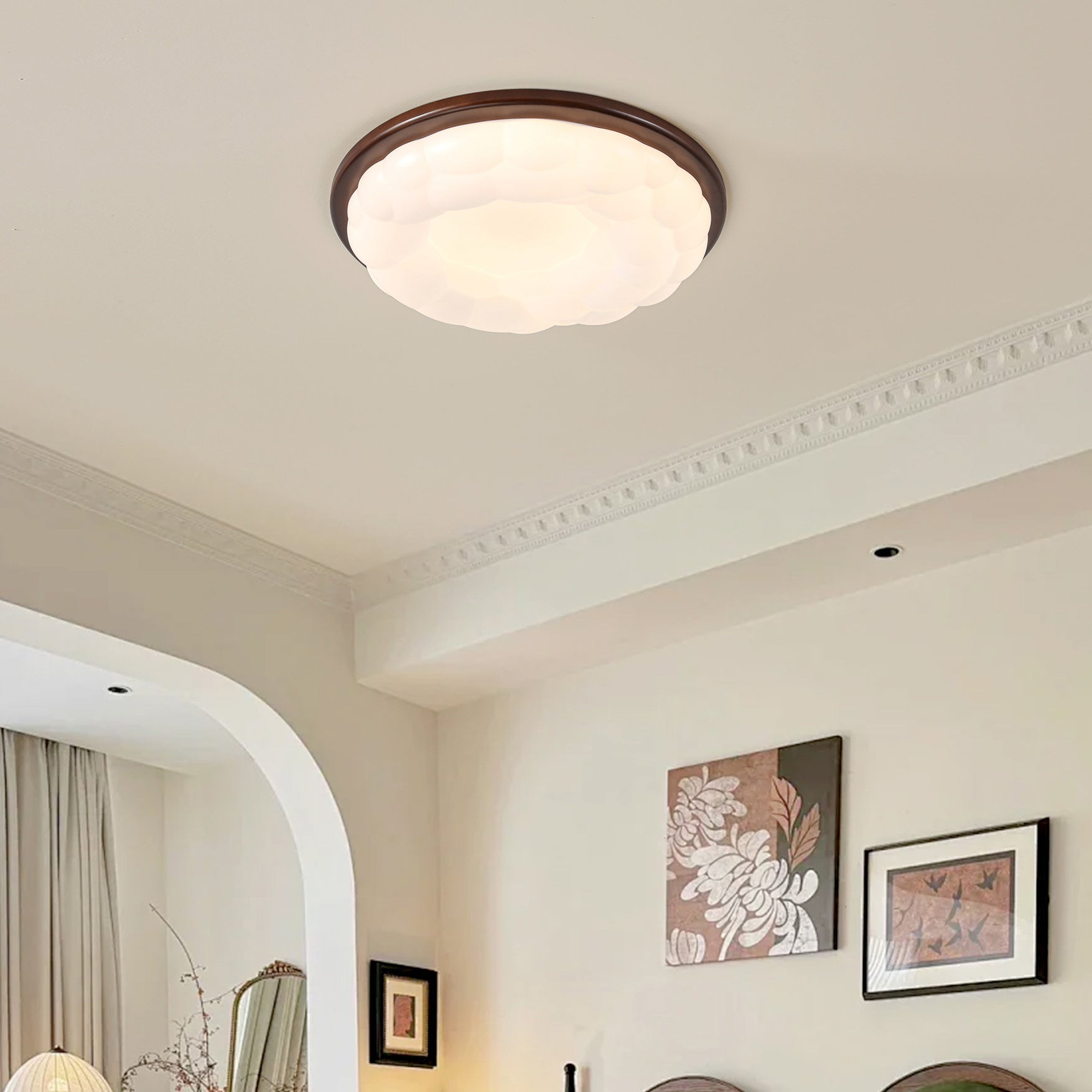 Modern Mid-Century Iron And Acrylic Round Cloud LED Flush Mount Ceiling Light For Bedroom And Living Room