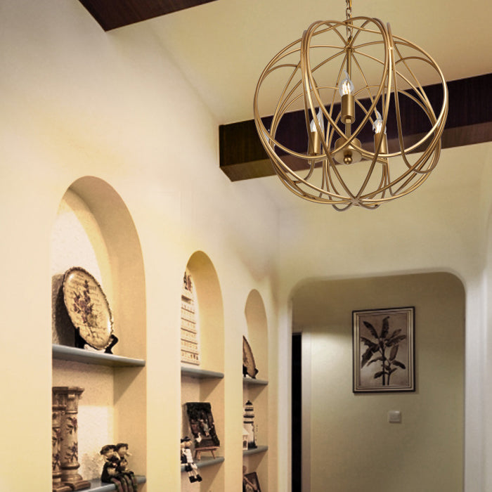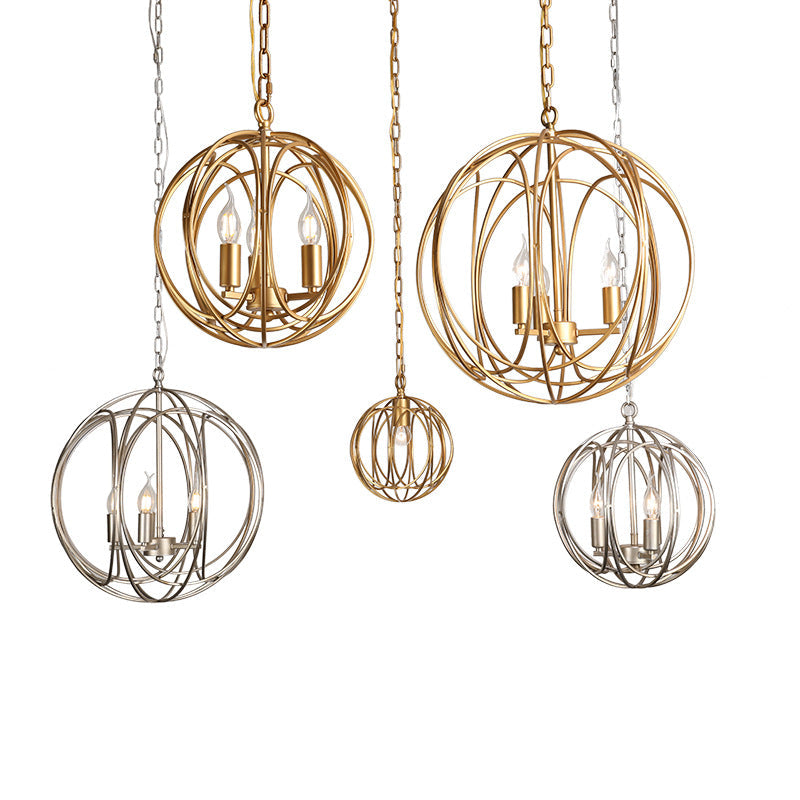 Modern Mid-century Iron Ball Candle 3-Light Chandeliers For Dining Room
