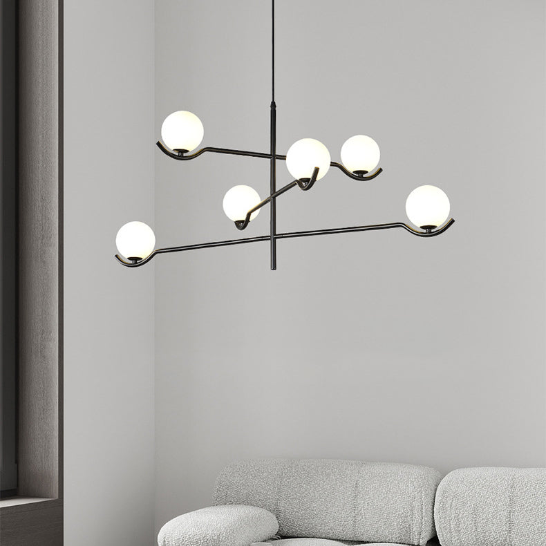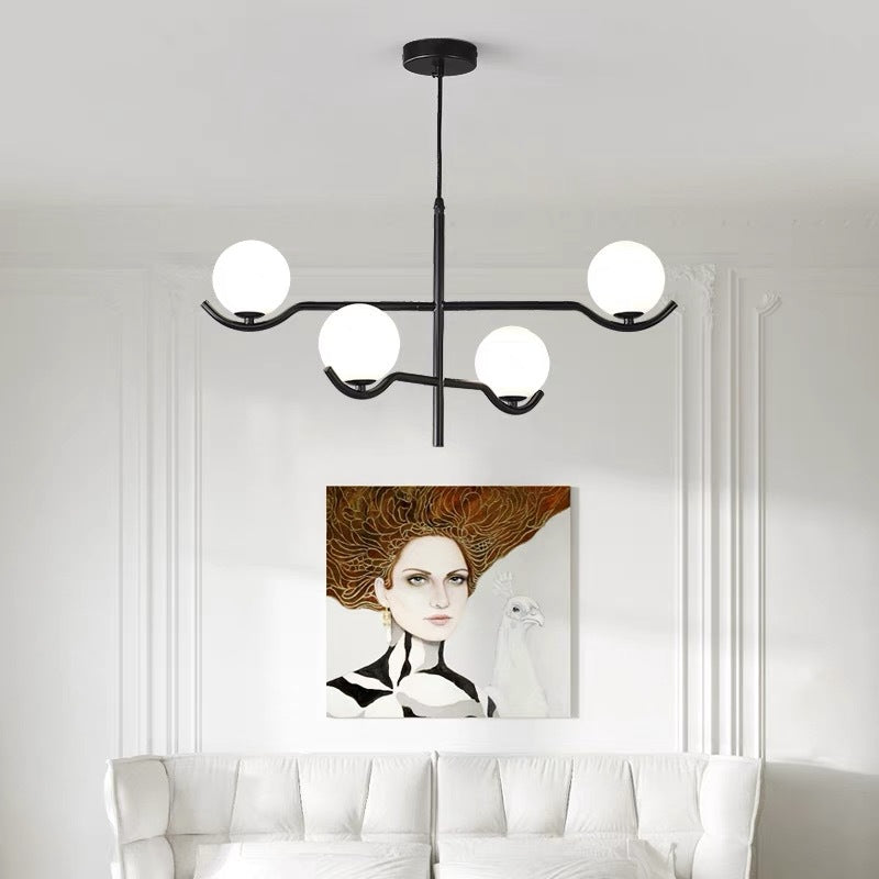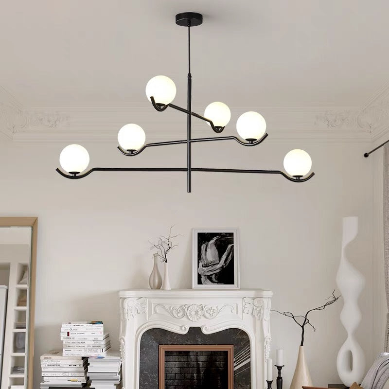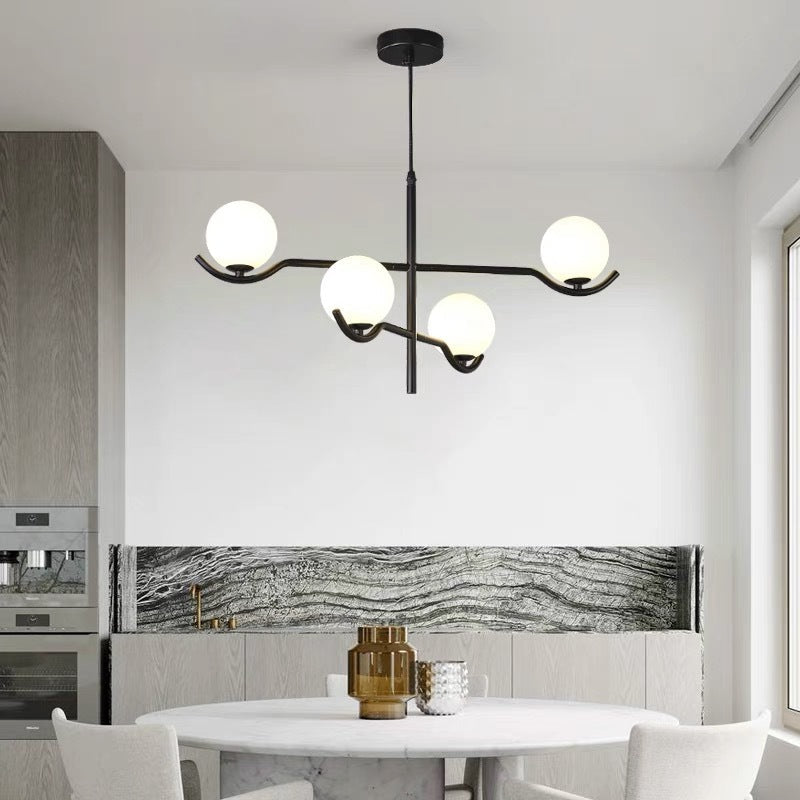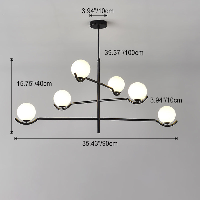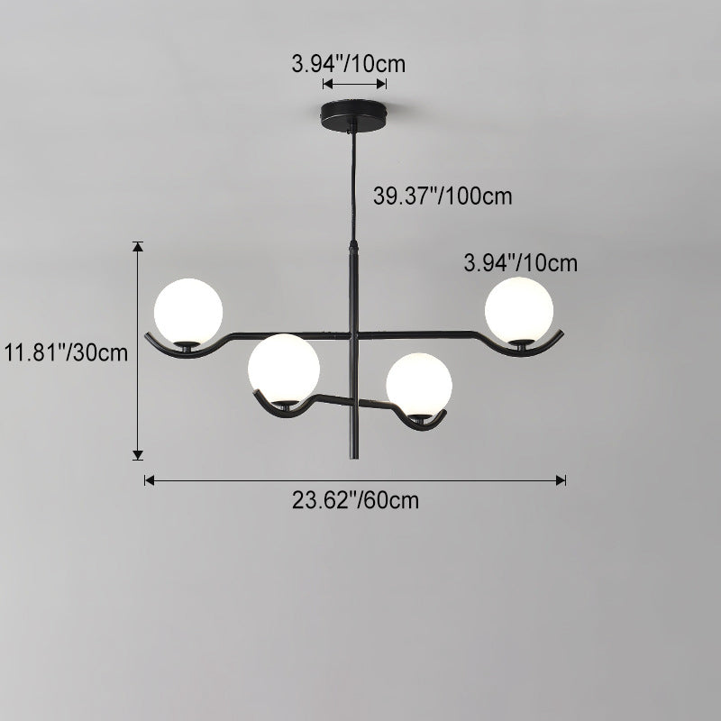Modern Mid-century Iron Long Rod Glass Globe Shade 4/6-Light Chandelier For Dining Room