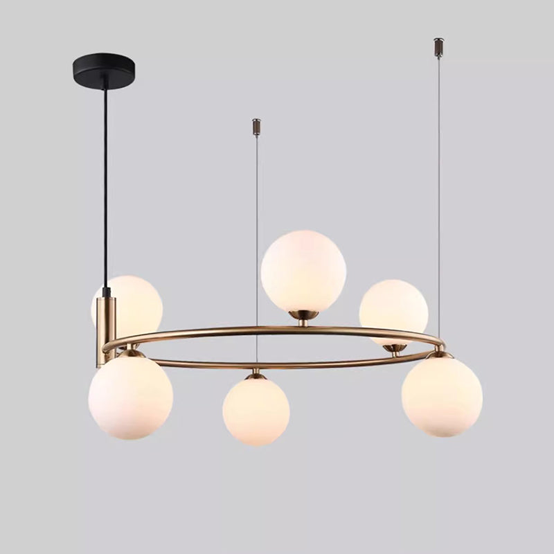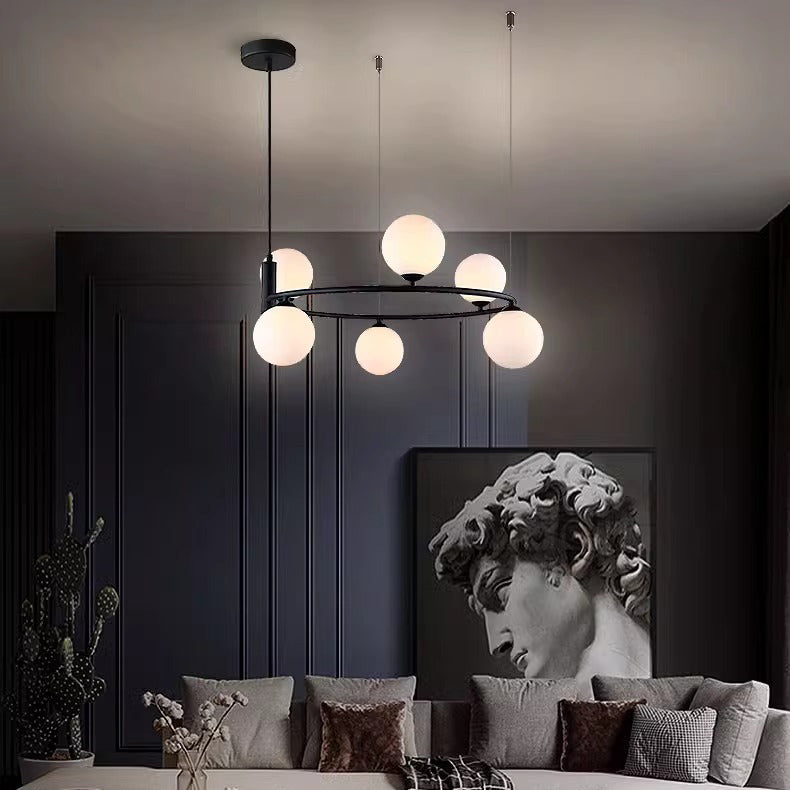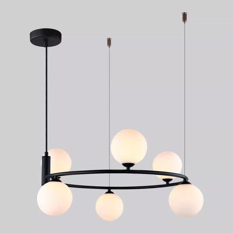Modern Mid-Century Iron Spherical Glass Shade 4/6-Light Chandelier For Living Room