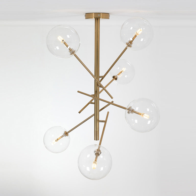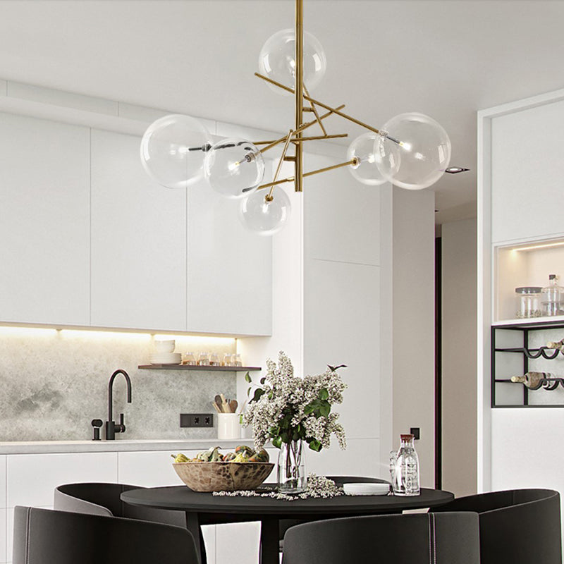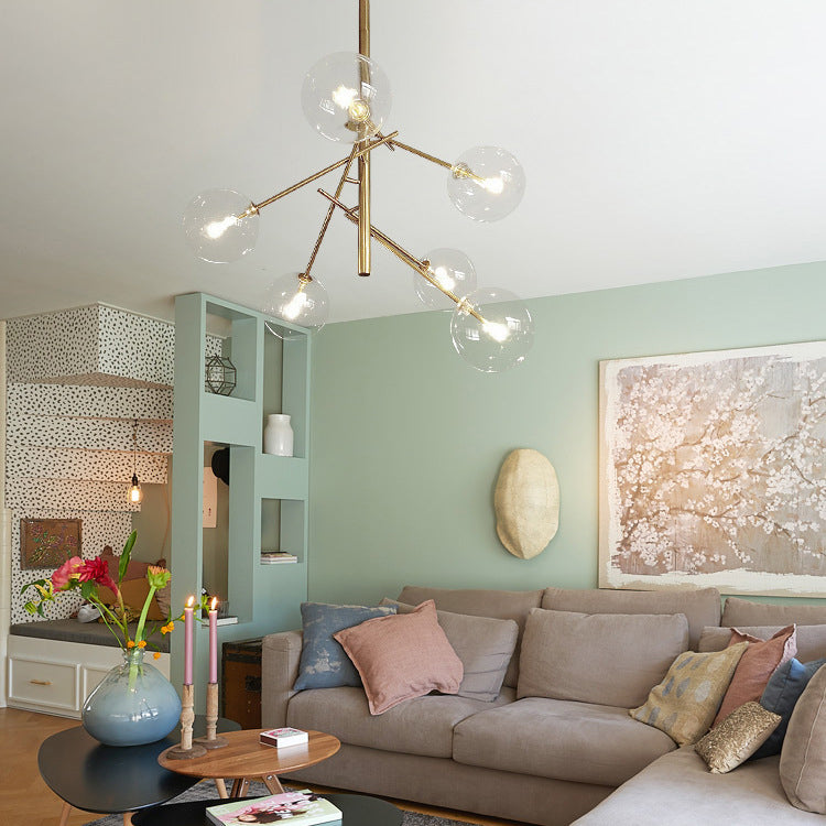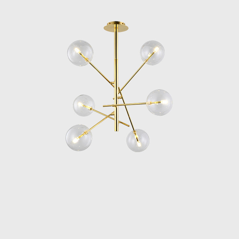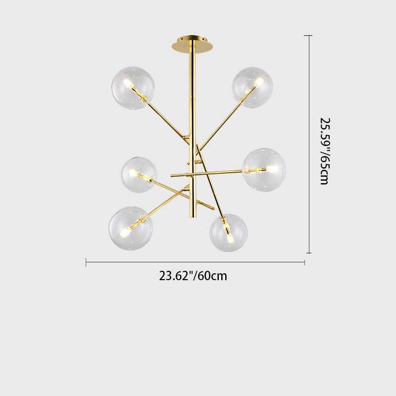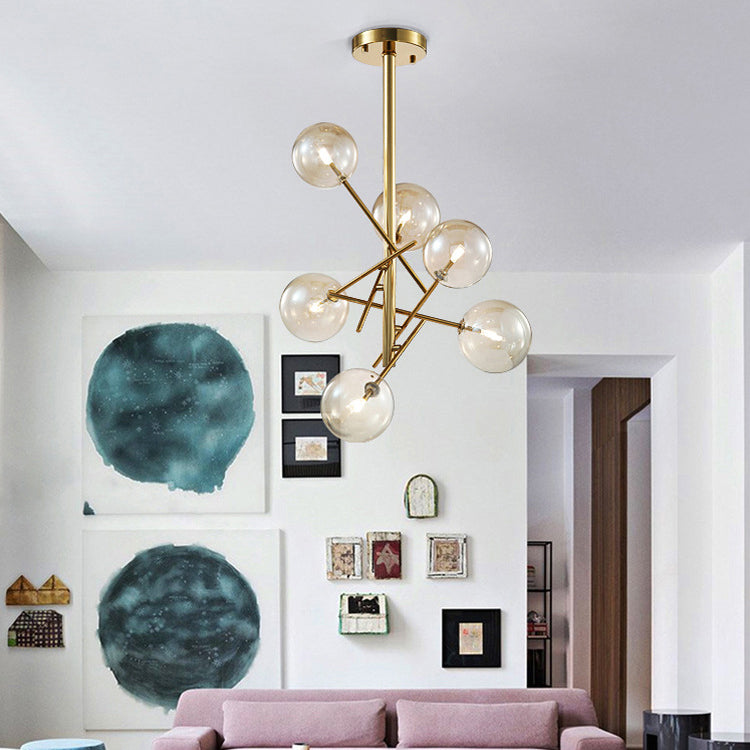 Modern Mid-century Magic Bean Glass Ball Iron Frame 6-Light Chandelier For Living Room