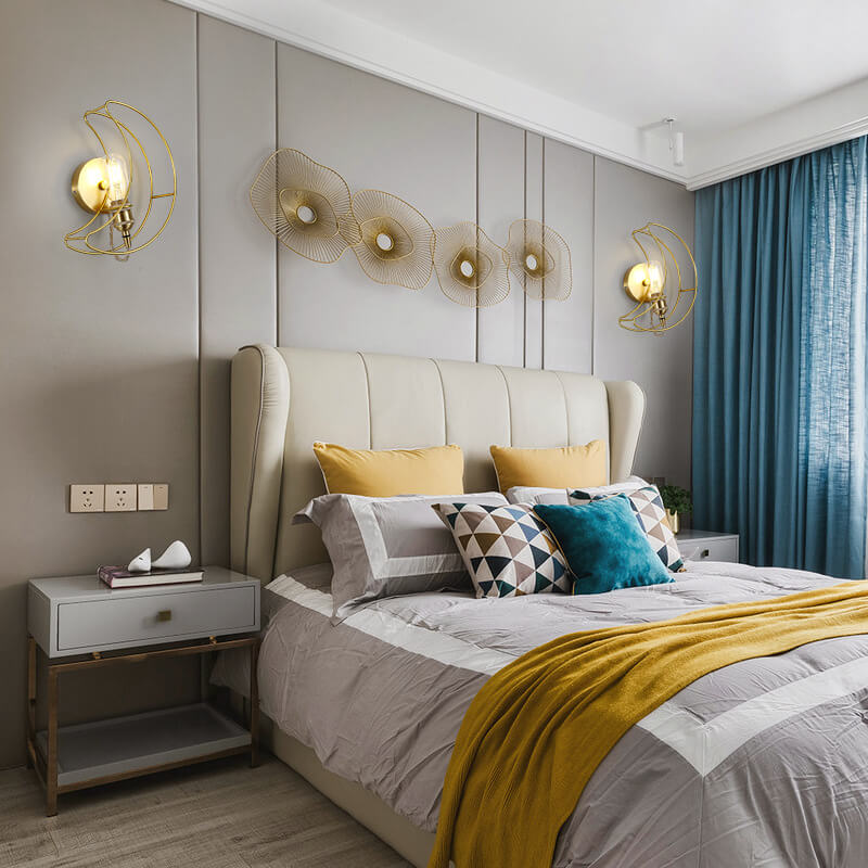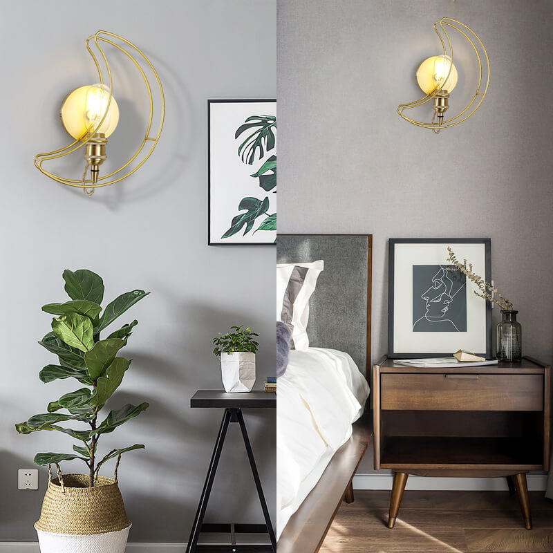 Modern Mid-Century Moon Copper 1-Light Wall Sconce Lamp For Living Room