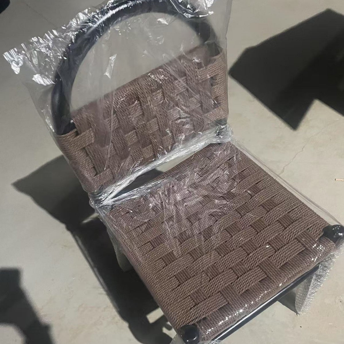 Modern Mid-Century Oval Half Hollow Back Solid Wood Kraft Rope Dining Chair For Dining Room