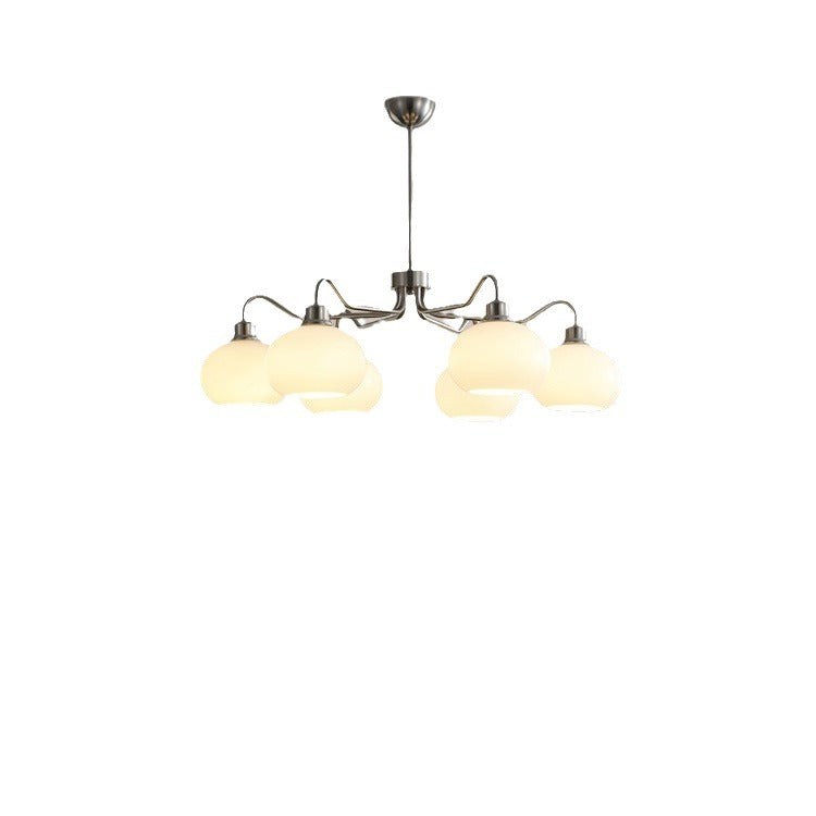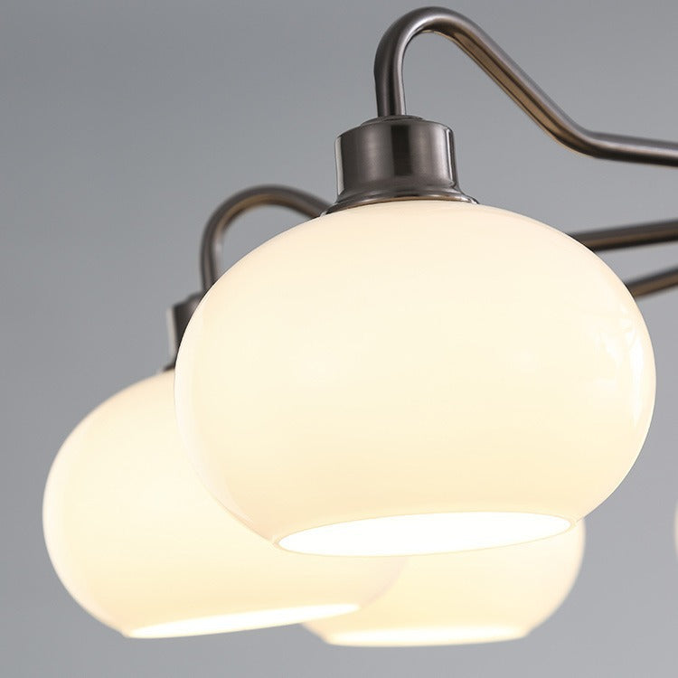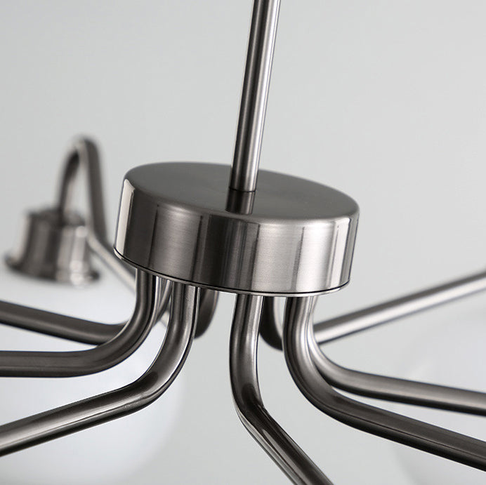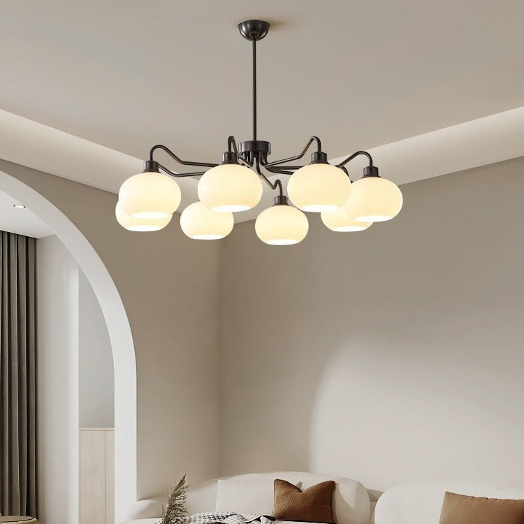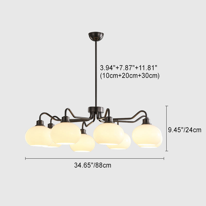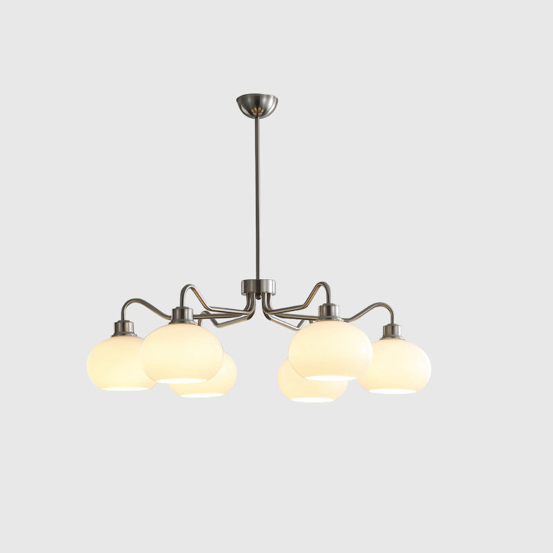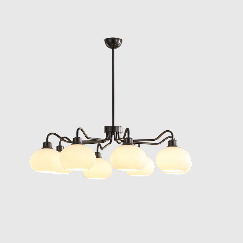 Modern Mid-Century Persimmon Glass Shade Hardware 6/8-Light Chandelier For Living Room