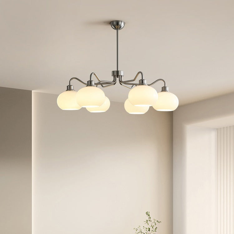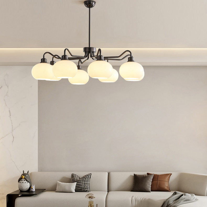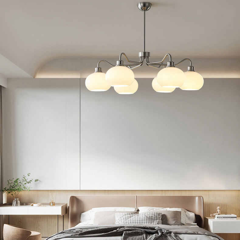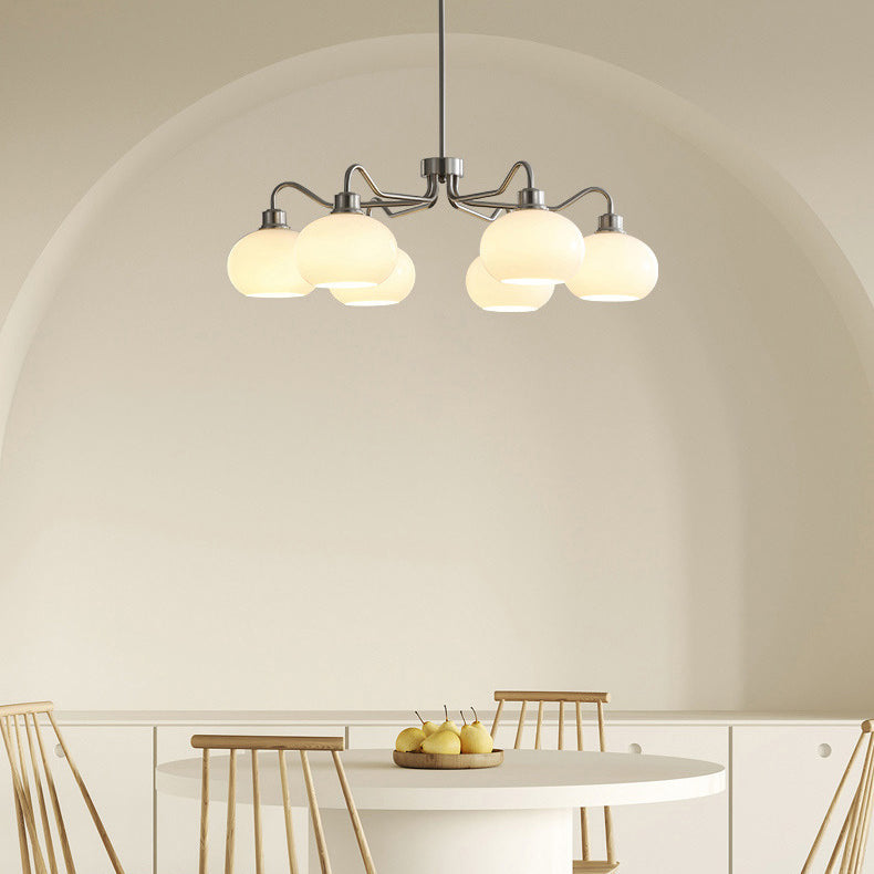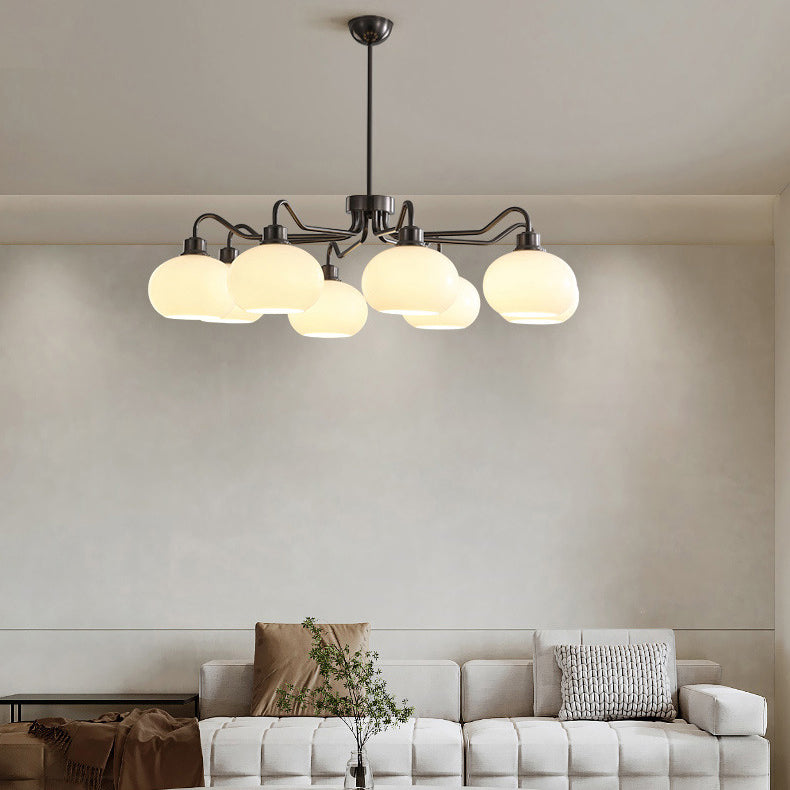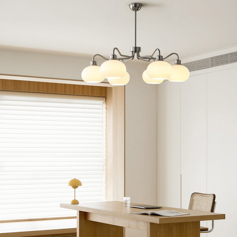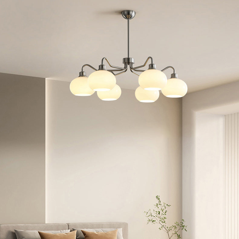 Modern Mid-Century Persimmon Glass Shade Hardware 6/8-Light Chandelier For Living Room