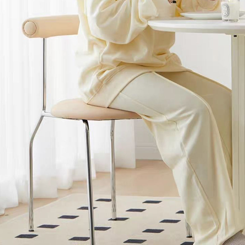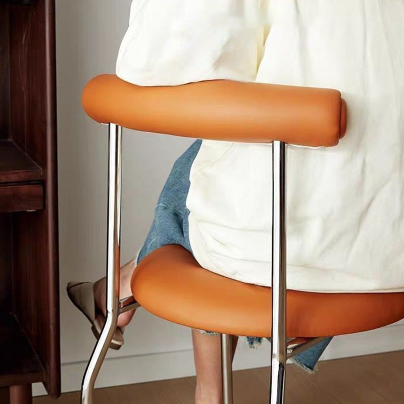Modern Mid-Century Round Curve Carbon Steel Faux Leather Dining Chair Backrest For Dining Room