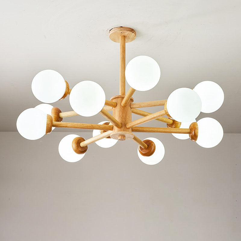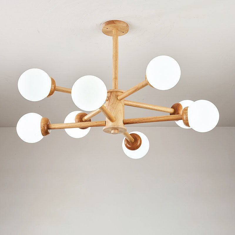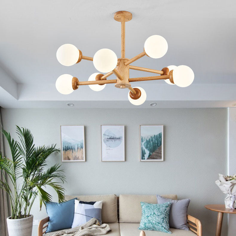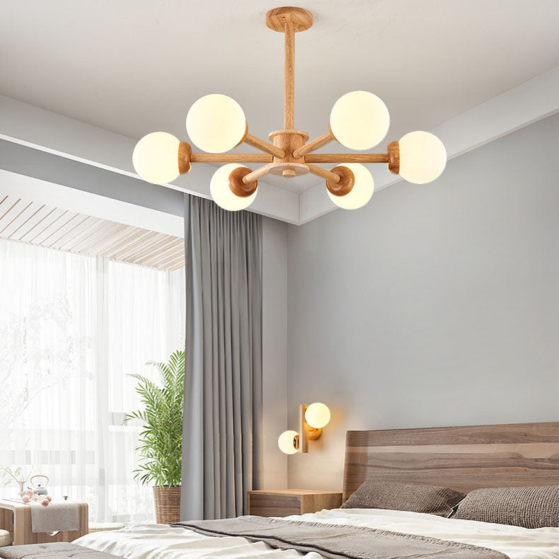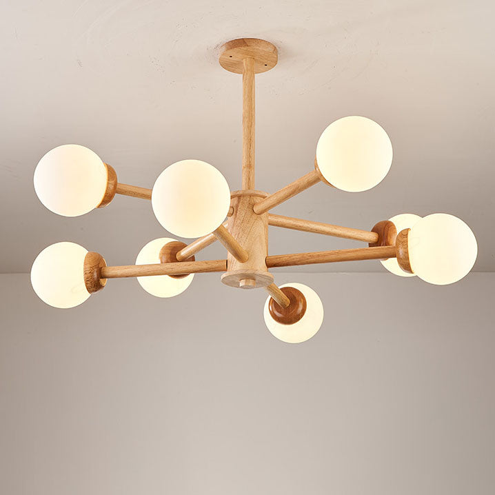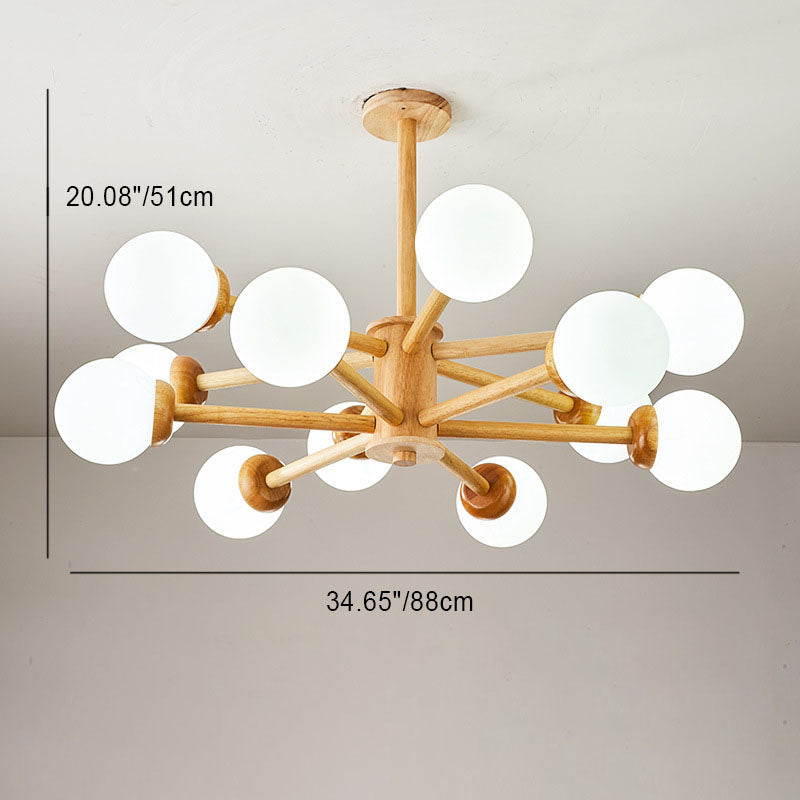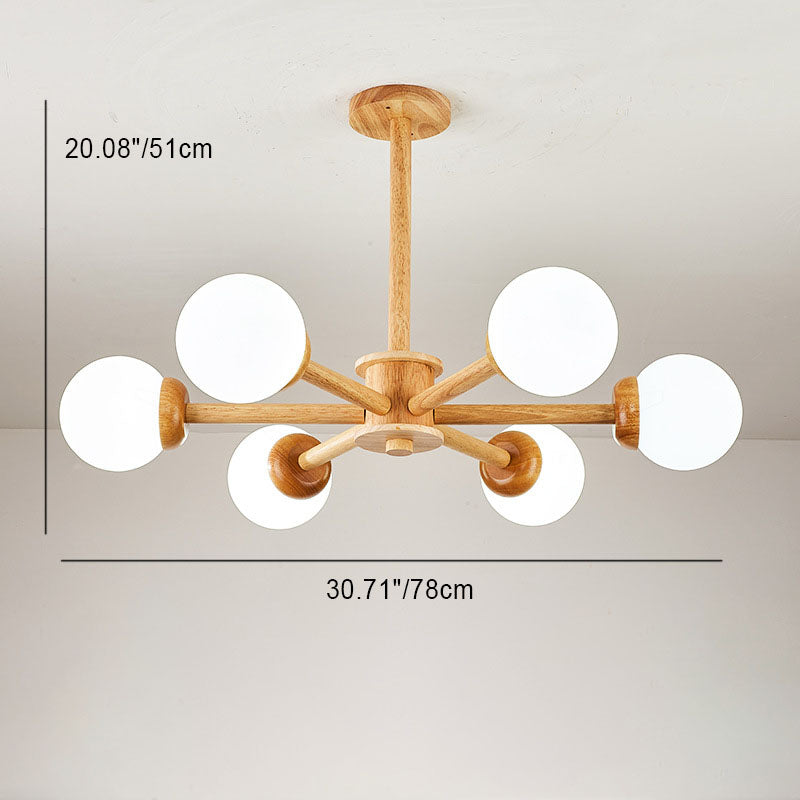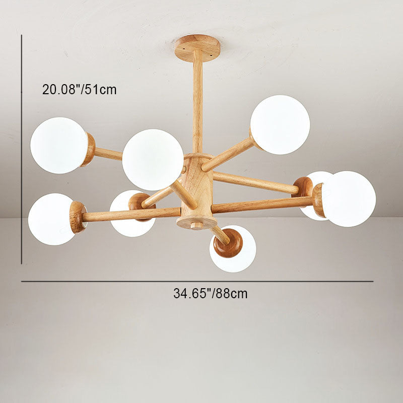 Modern Mid-century Rubberwood Branch Frame Glass Magic Bean 6/8/12-Light Chandelier For Bedroom