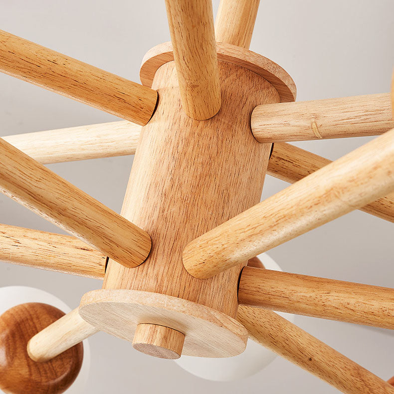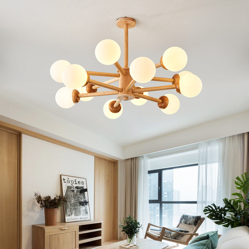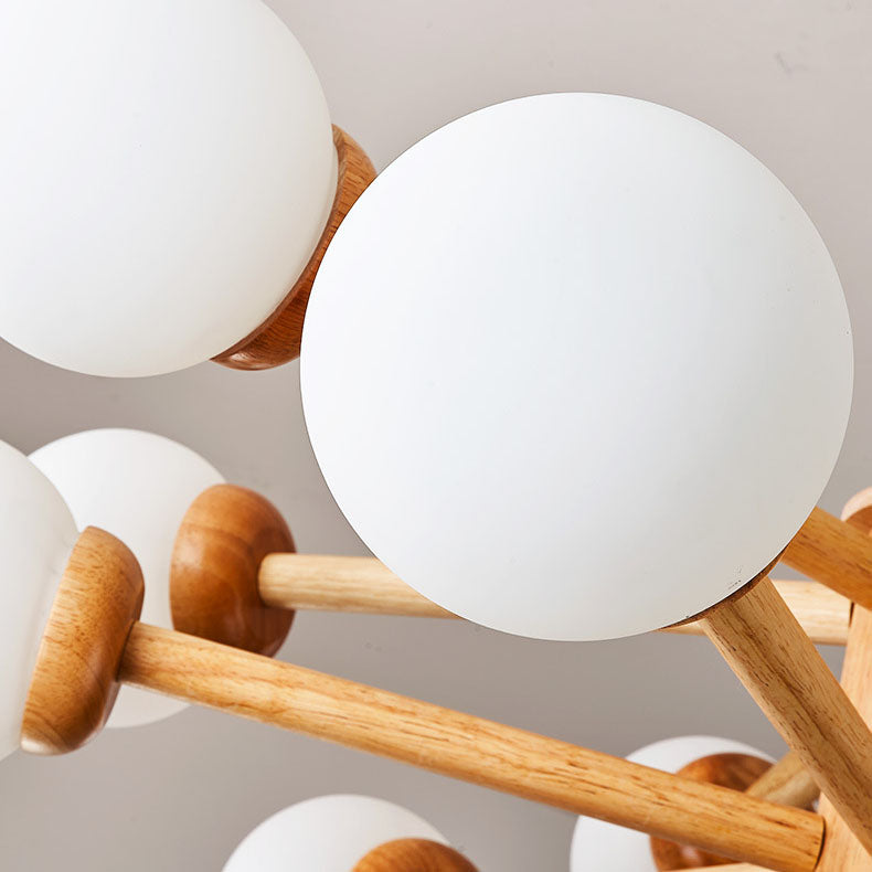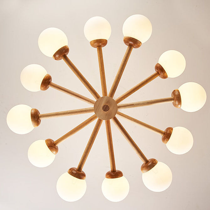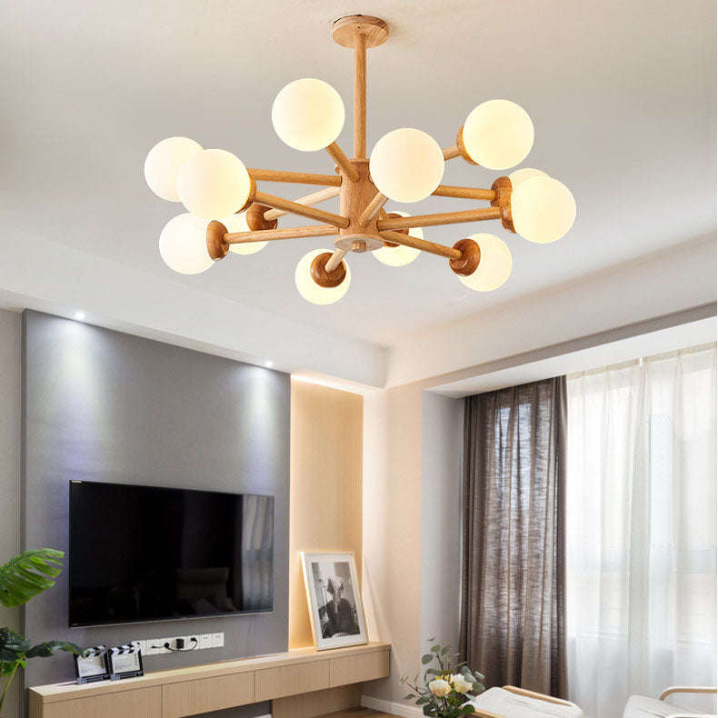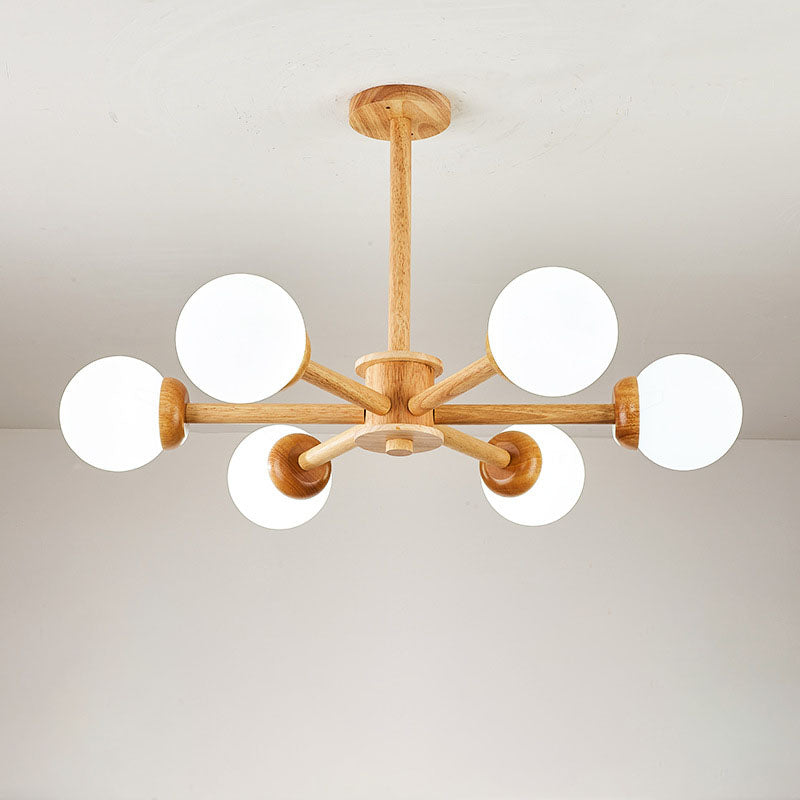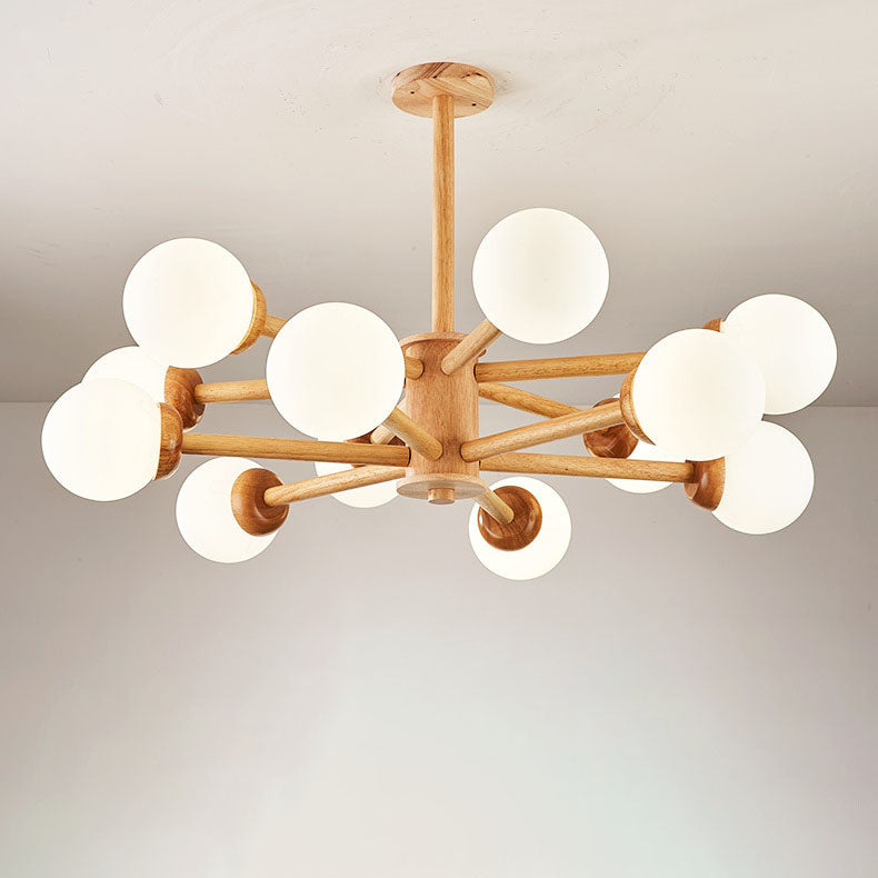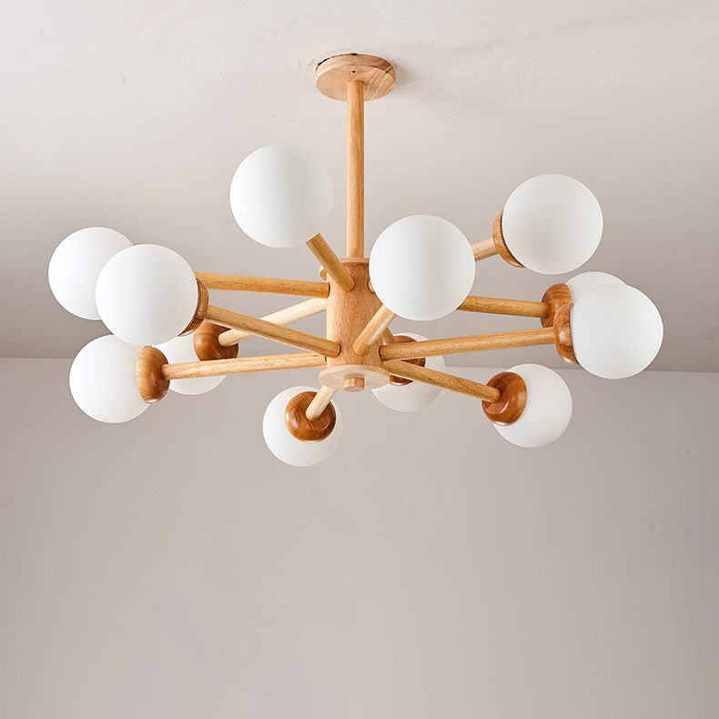 Modern Mid-century Rubberwood Branch Frame Glass Magic Bean 6/8/12-Light Chandelier For Bedroom