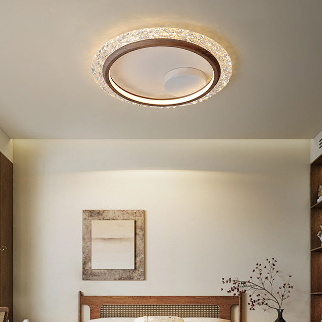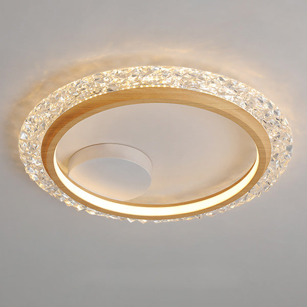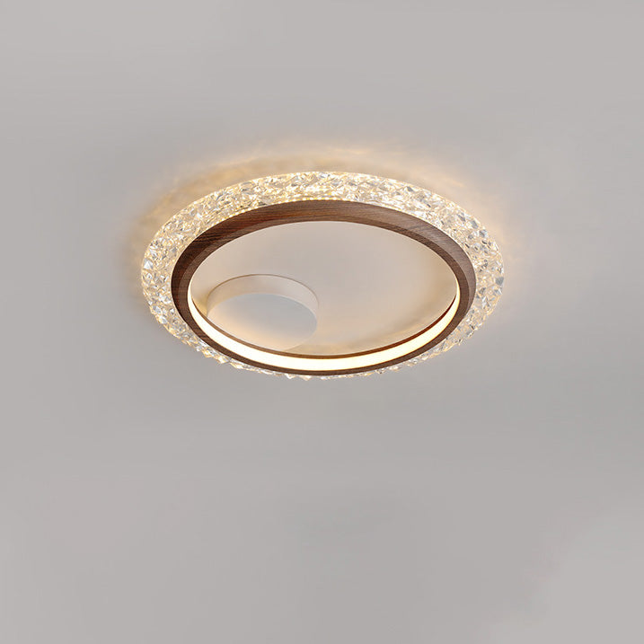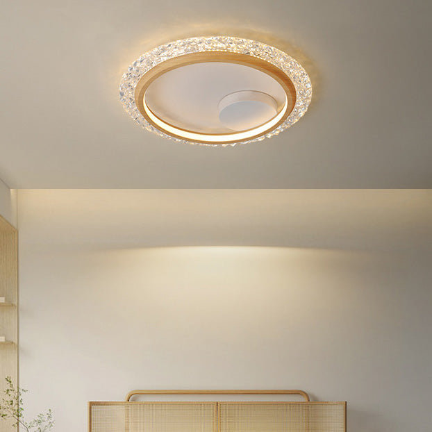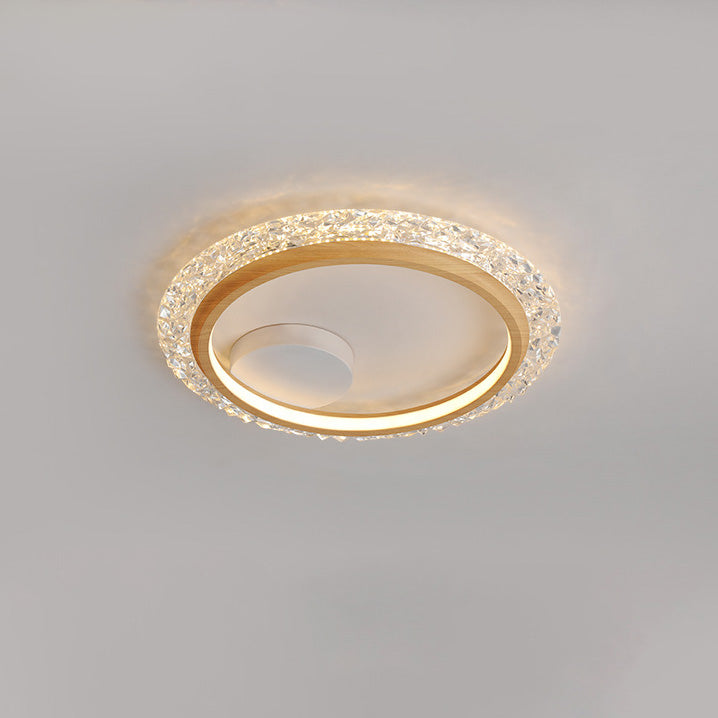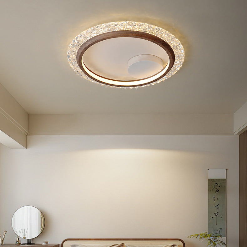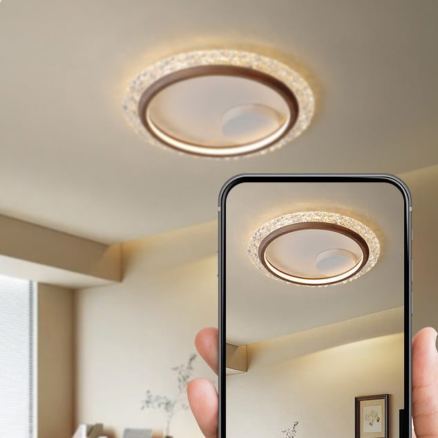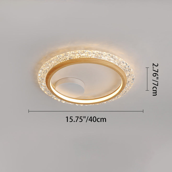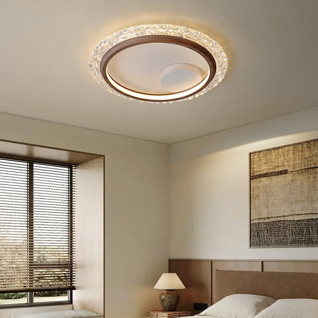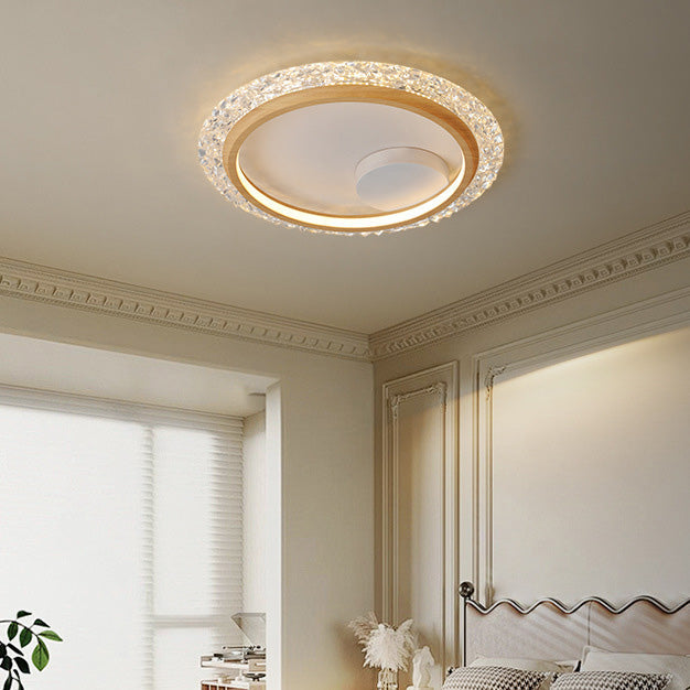 Modern Mid-Century Wabi-Sabi Round Crystal Aluminum Iron LED Flush Mount Ceiling Light For Bedroom