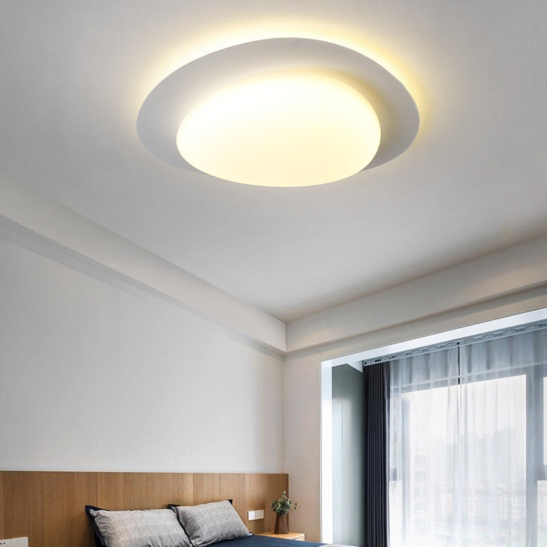Modern Minimalist Acrylic Iron Pebble-Shaped LED Flush Mount Ceiling Light For Bedroom & Living Room