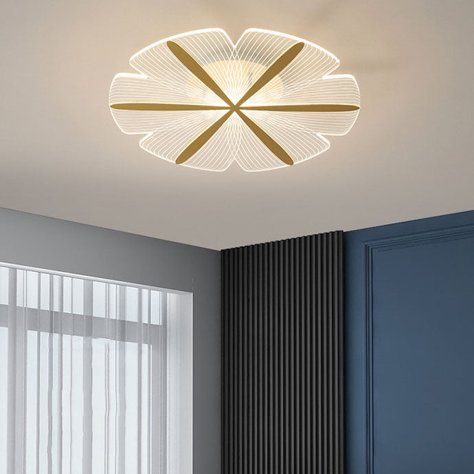 Modern Minimalist Acrylic Petal Round Gold LED Flush Mount Ceiling Light