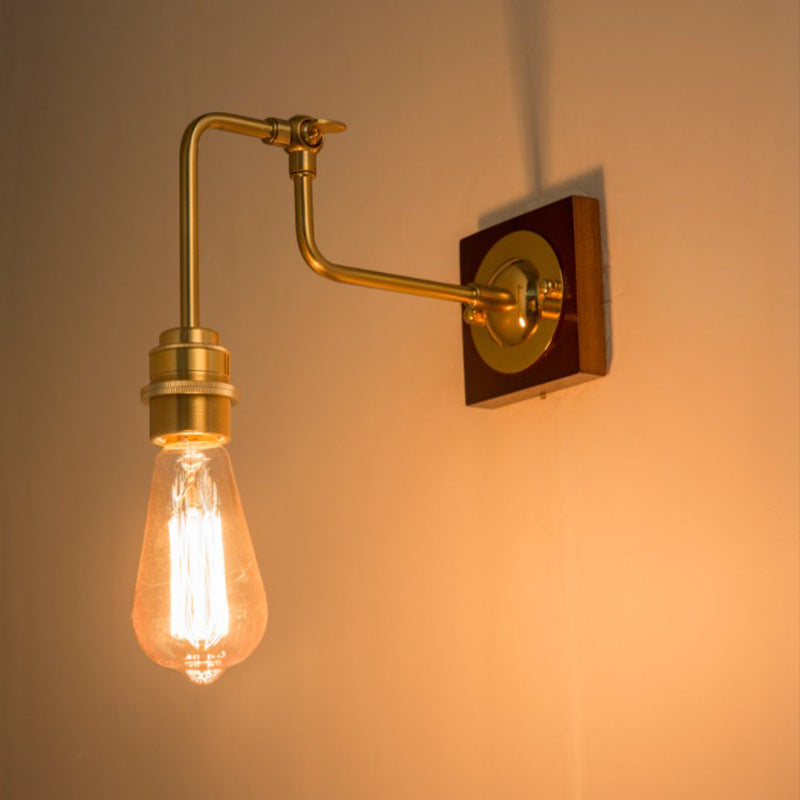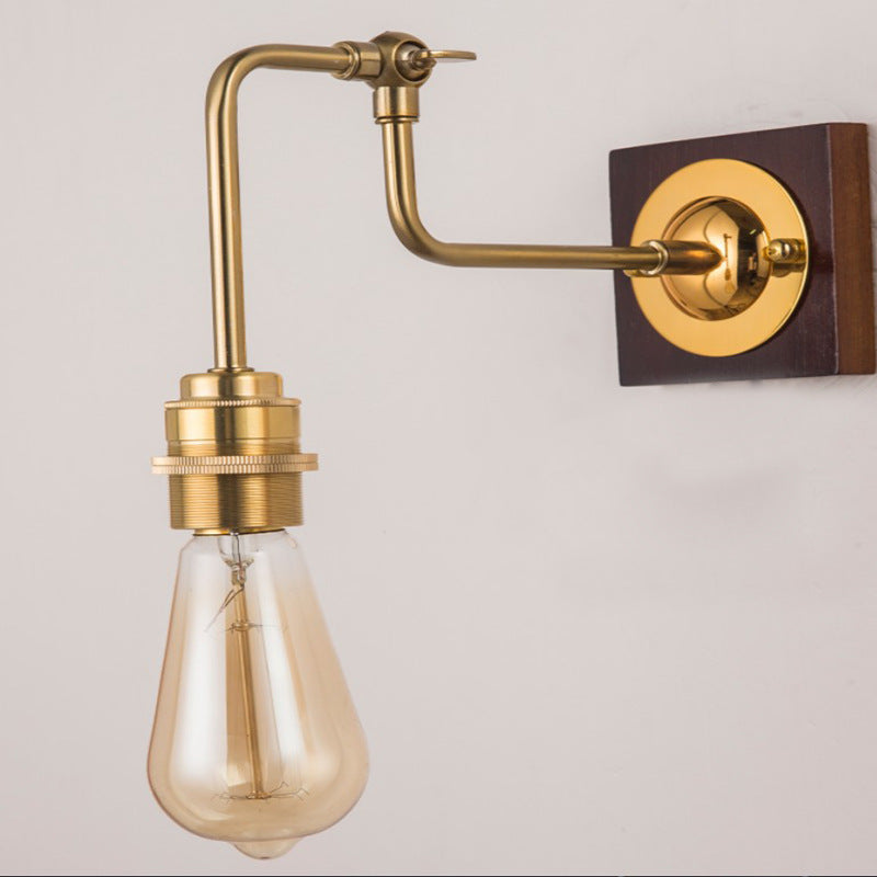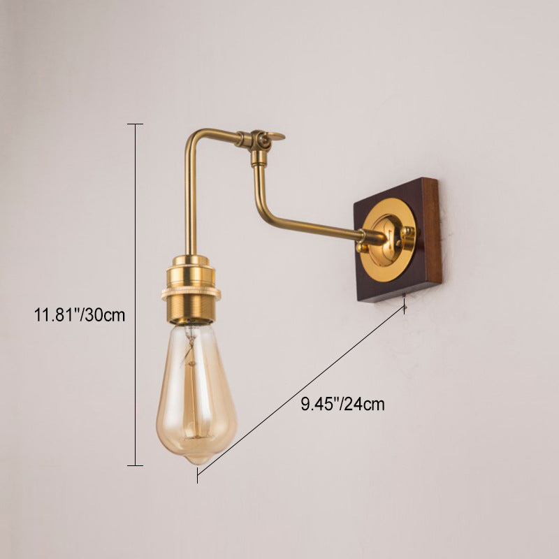 Modern Minimalist Adjustable Curved Rod Solid Wood Brass 1-Light Wall Sconce Lamp For Living Room