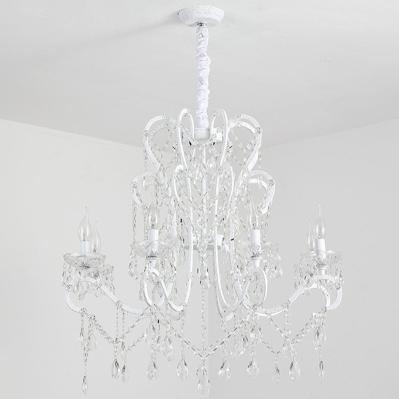 Modern Minimalist Branch Candlesticks Crystal Iron Glass 4/6/8 Light Chandelier For Living Room