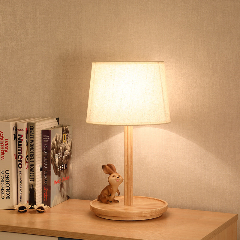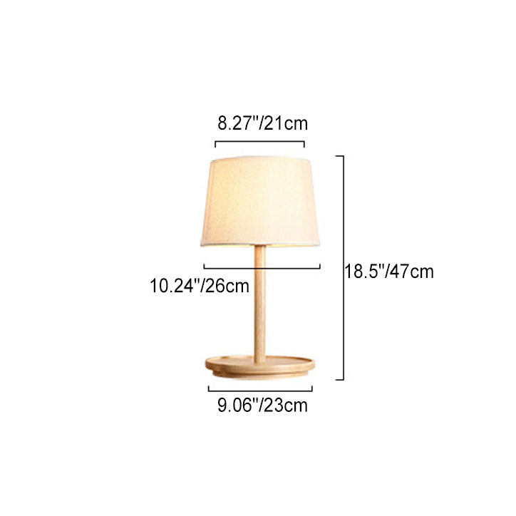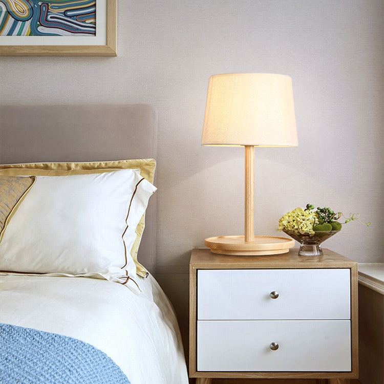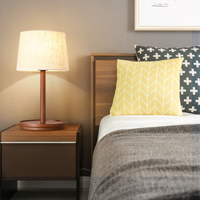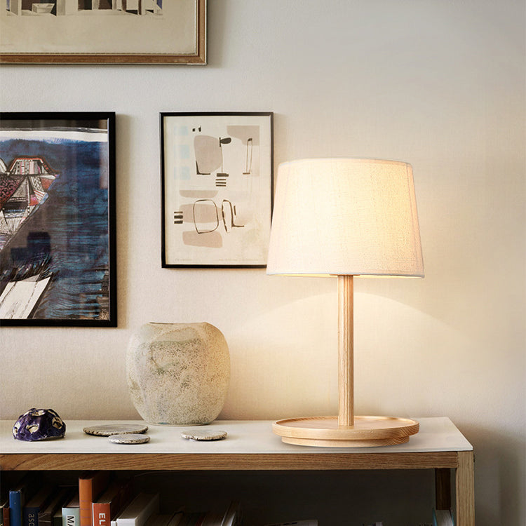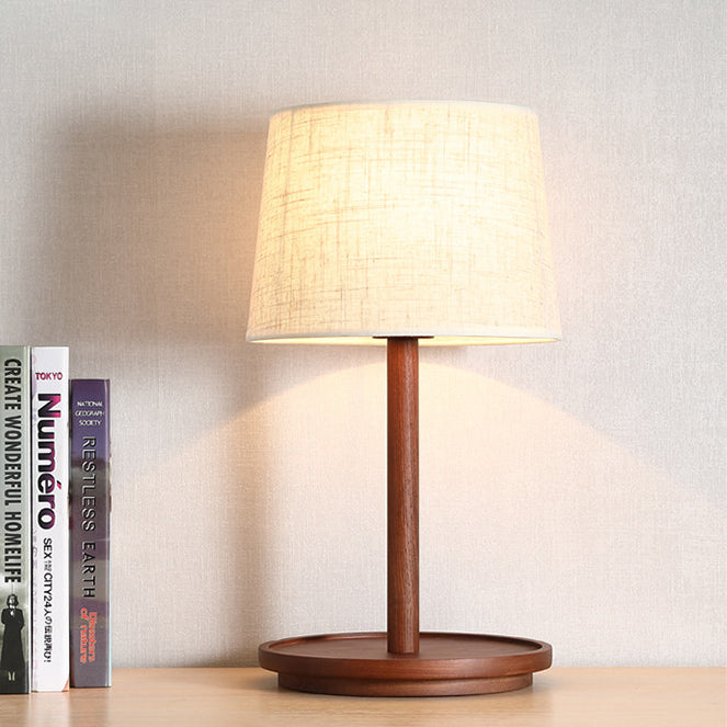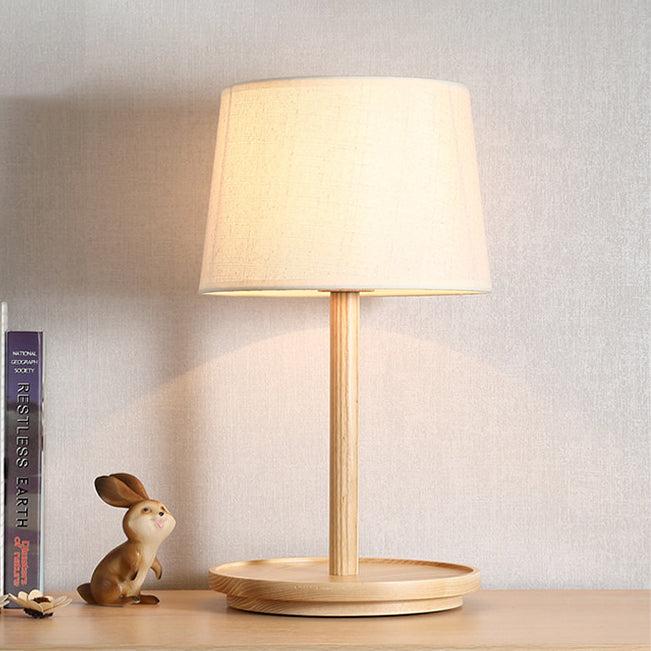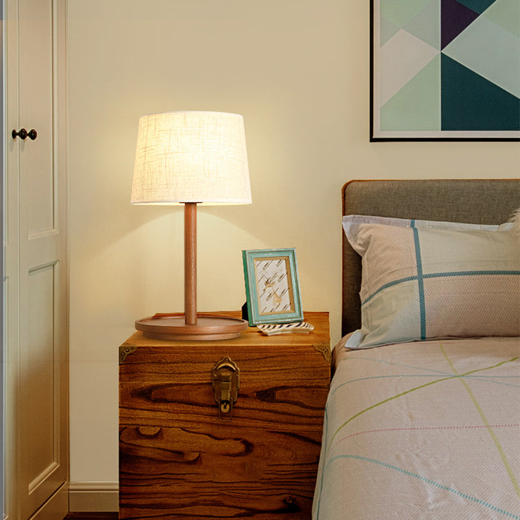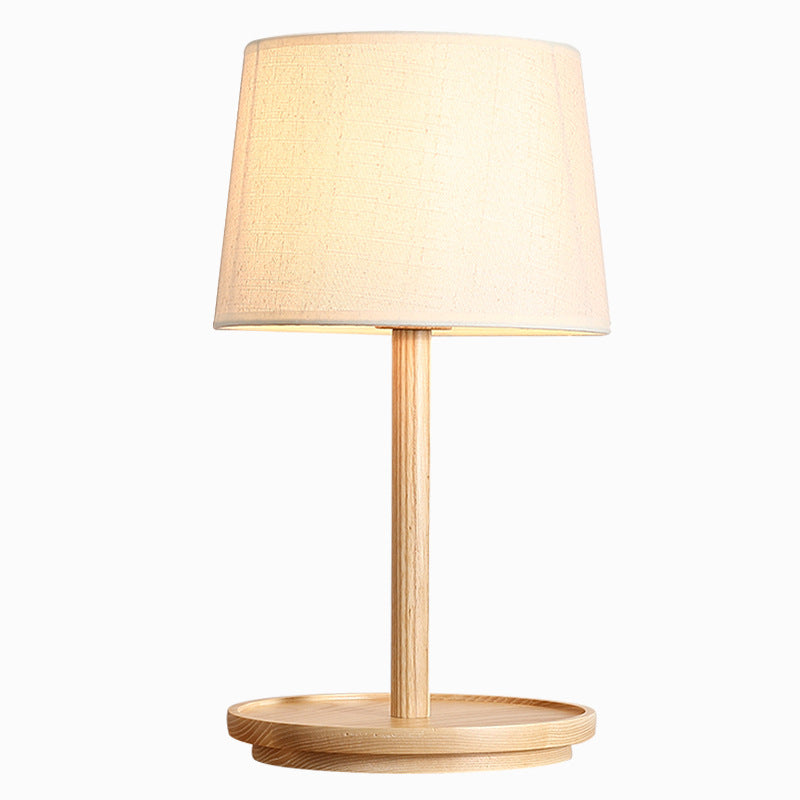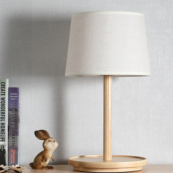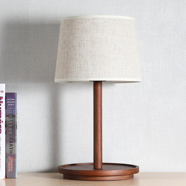 Modern Minimalist Cone Fabric Wood Base 1-Light Table Lamp For Study