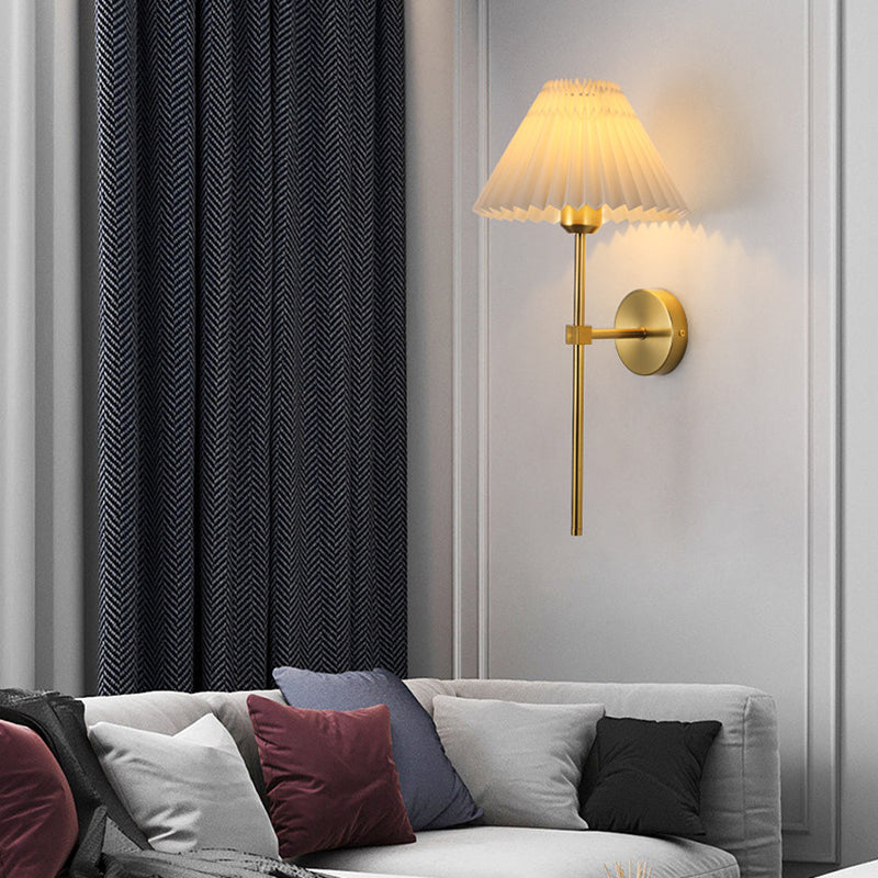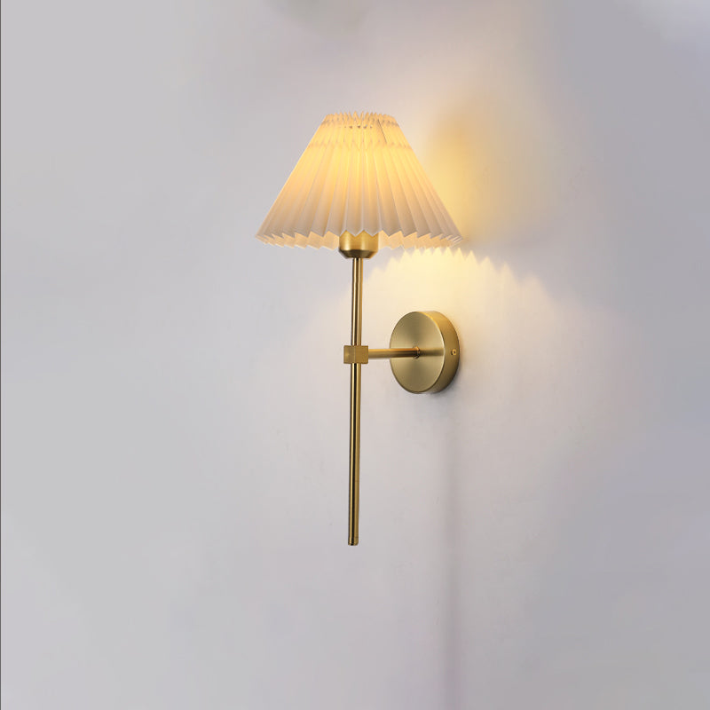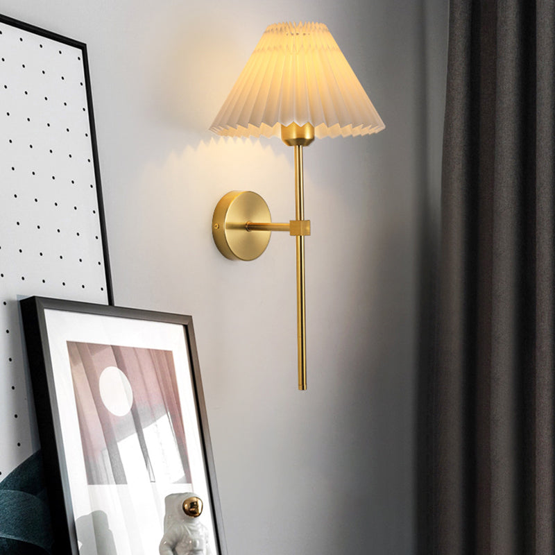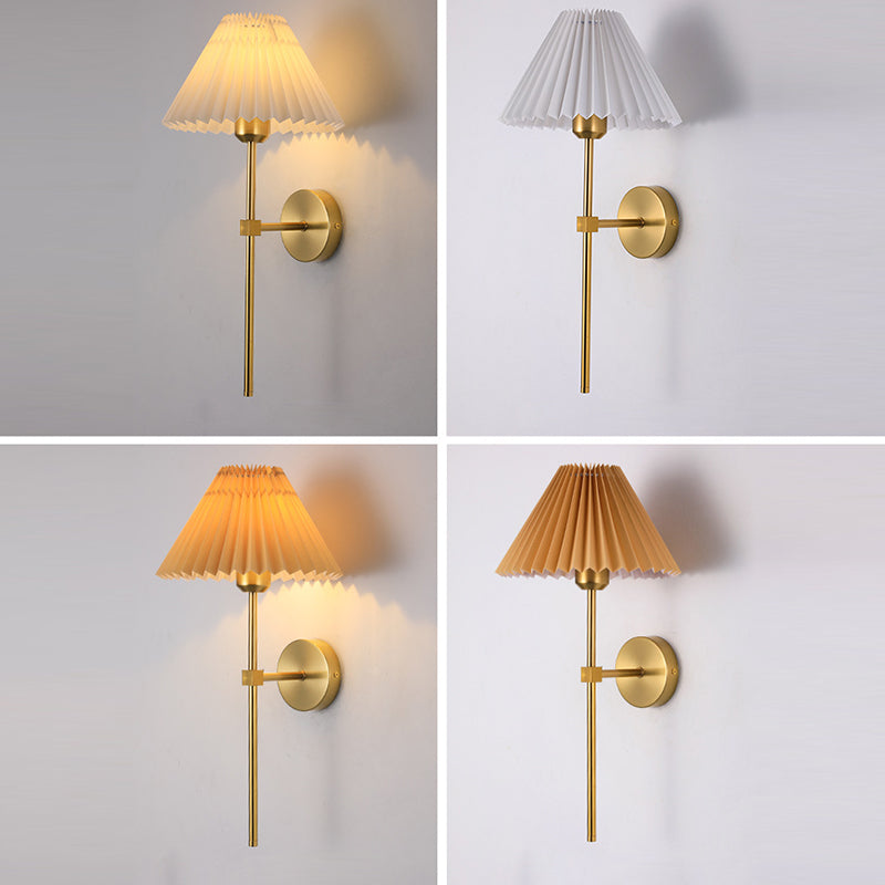 Modern Minimalist Cone Trapezoid Long Pole Iron Fabric 1-Light Wall Sconce Lamp For Bedroom