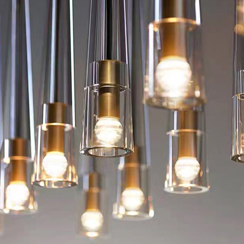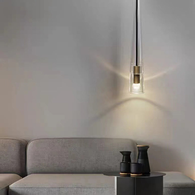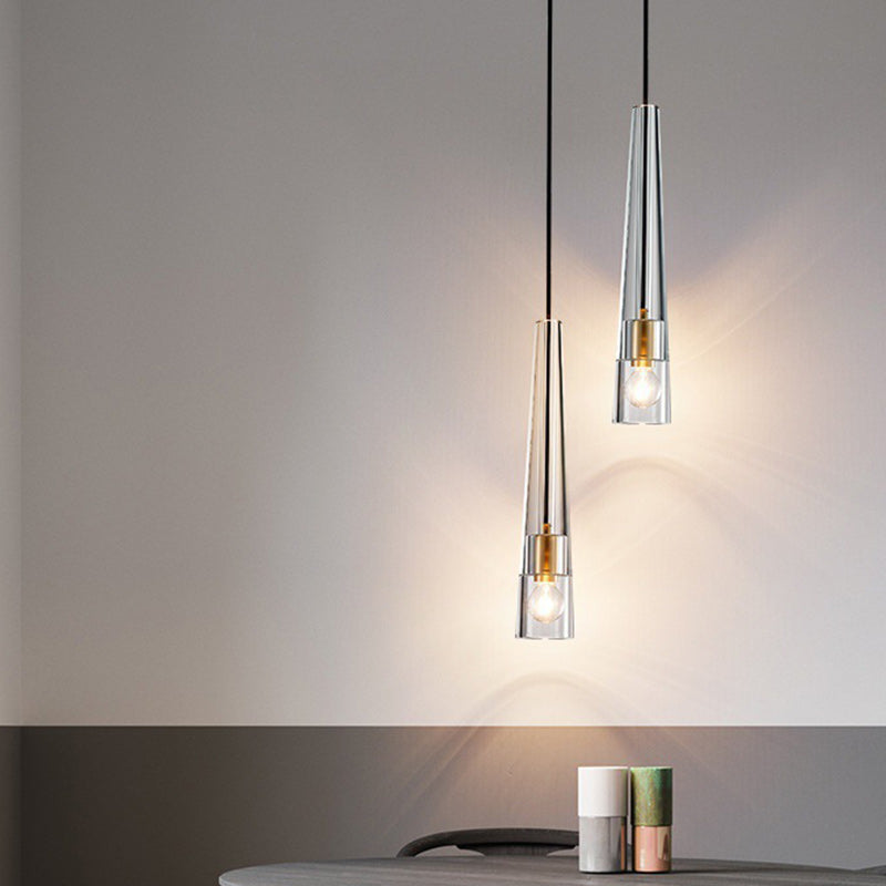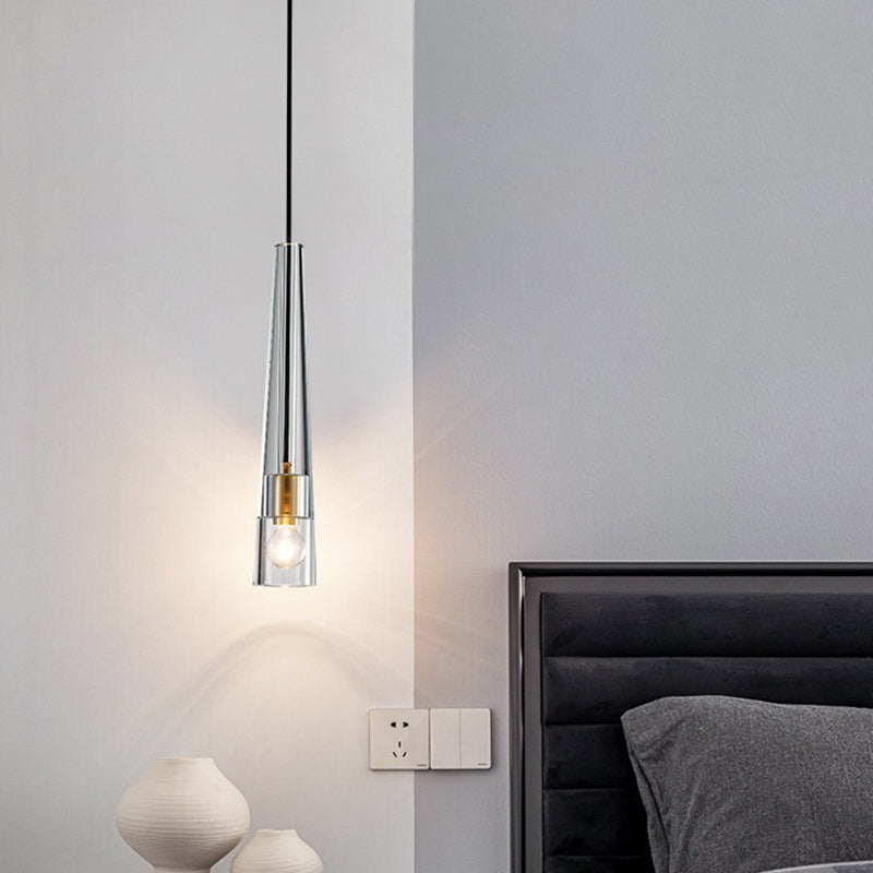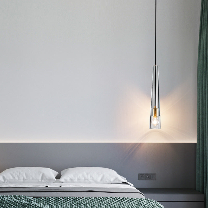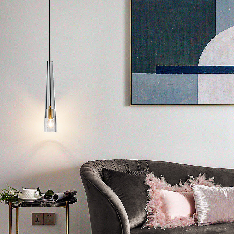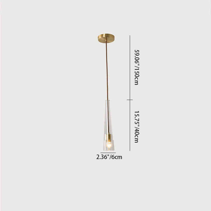 Modern Minimalist Conical Cylinder Copper Crystal 1-Light Pendant Light For Living Room
