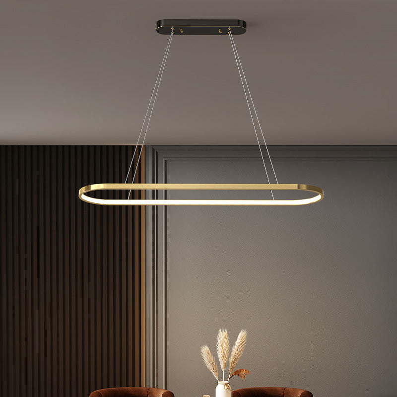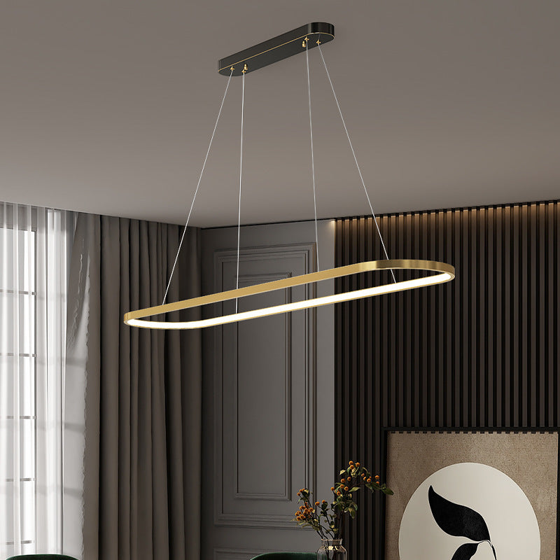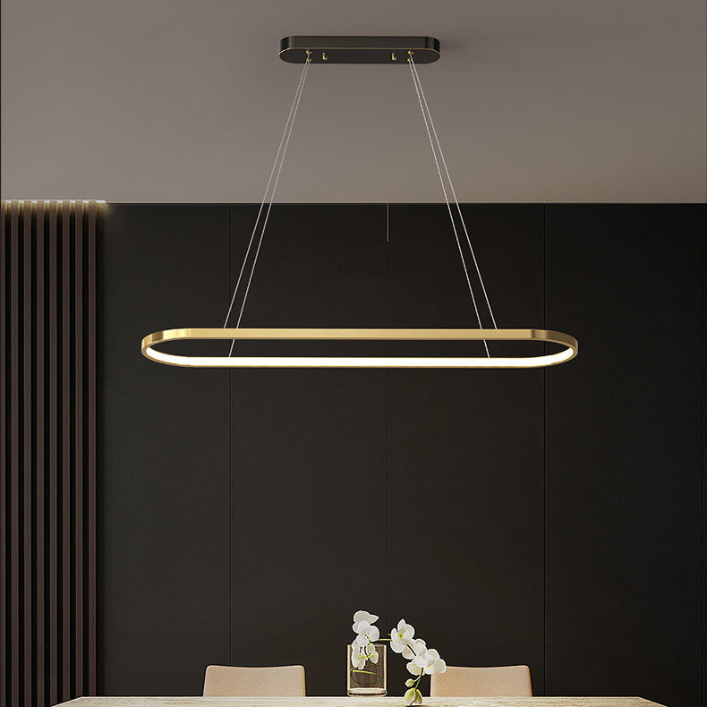 Modern Minimalist Copper Acrylic Elliptical LED Chandeliers For Dining Room
