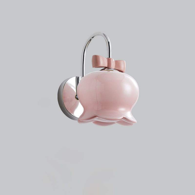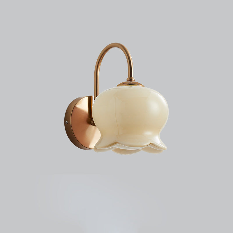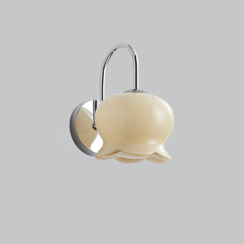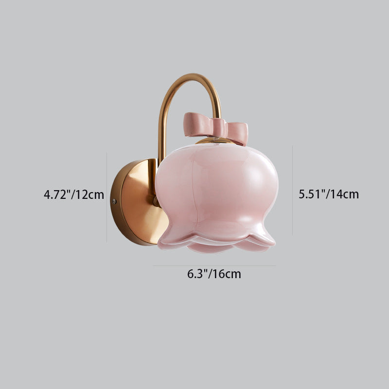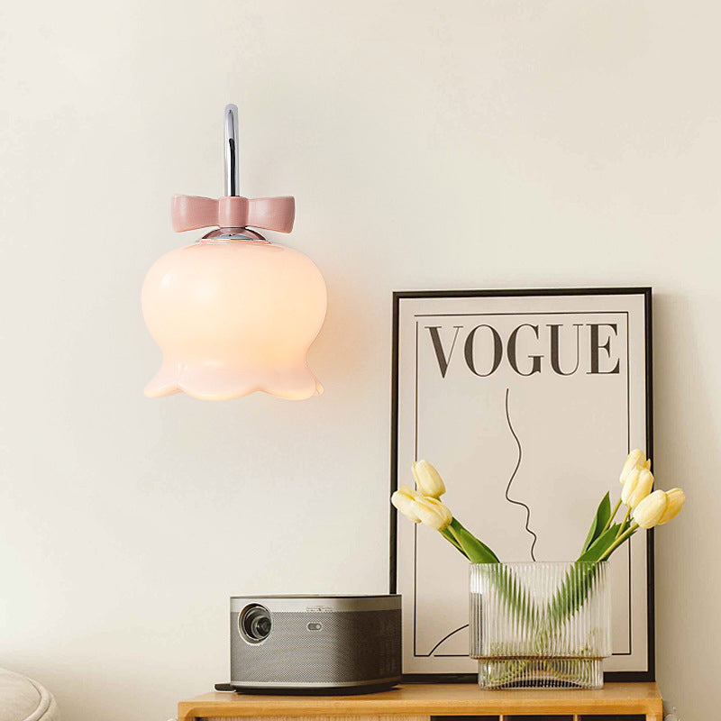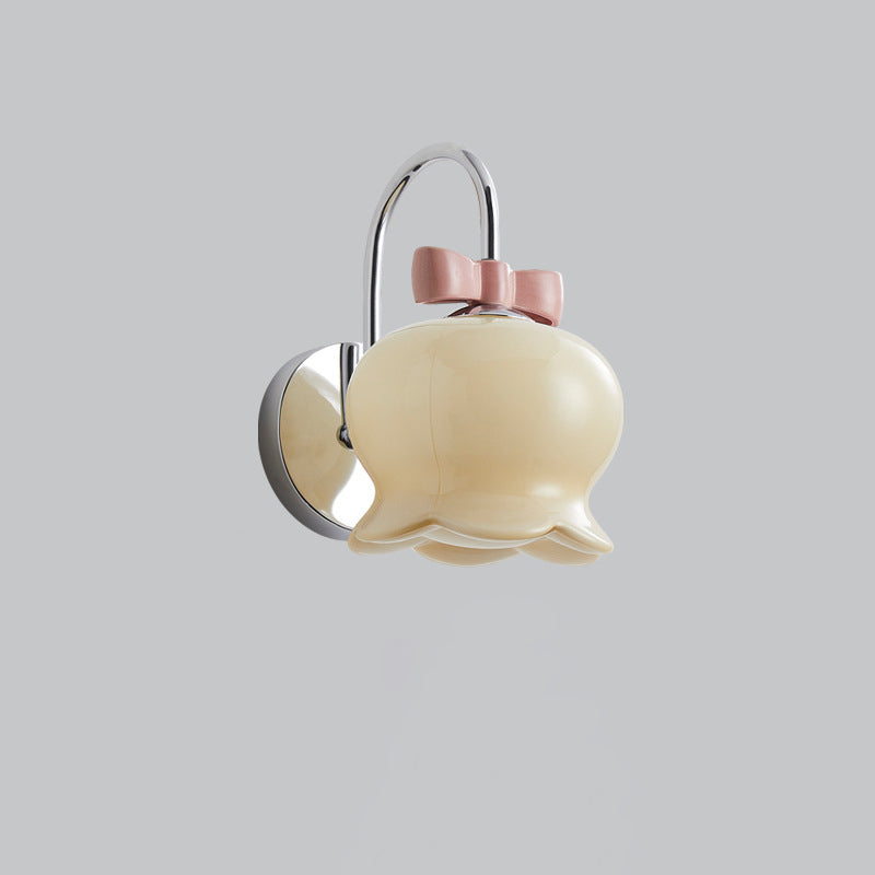 Modern Minimalist Cream Bell Orchid Flower Bow Iron Glass 1-Light Wall Sconce Lamp For Bedroom
