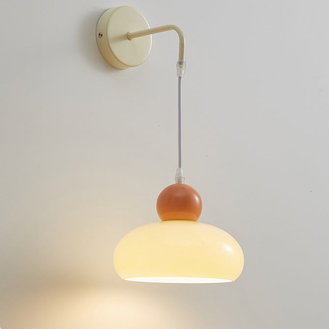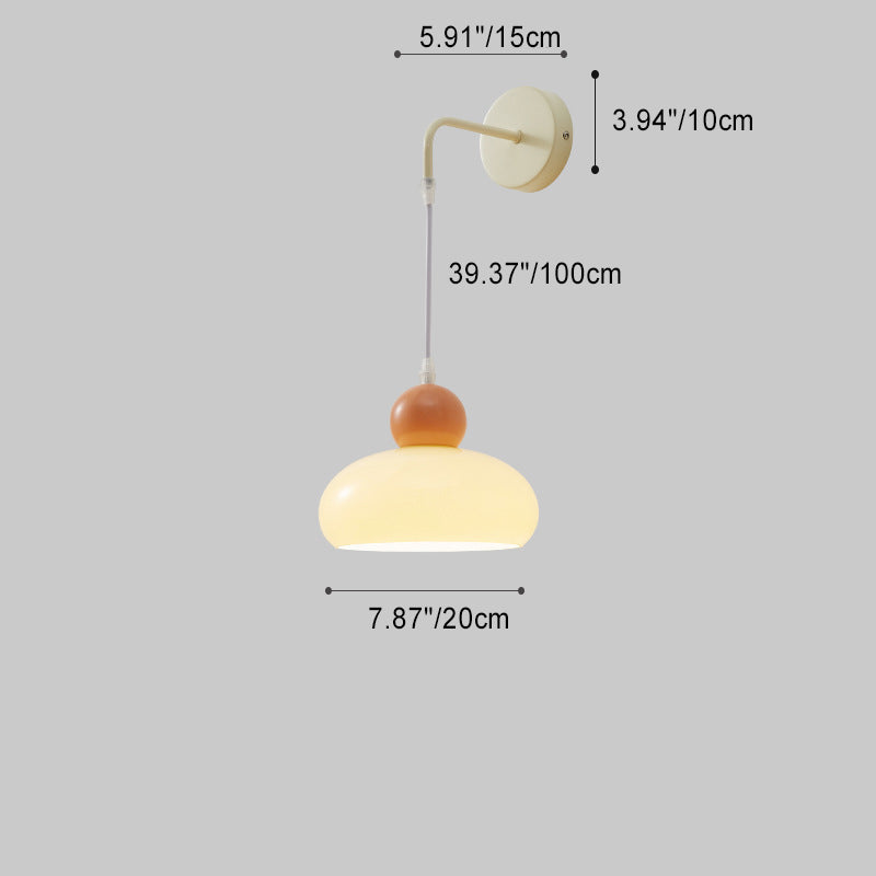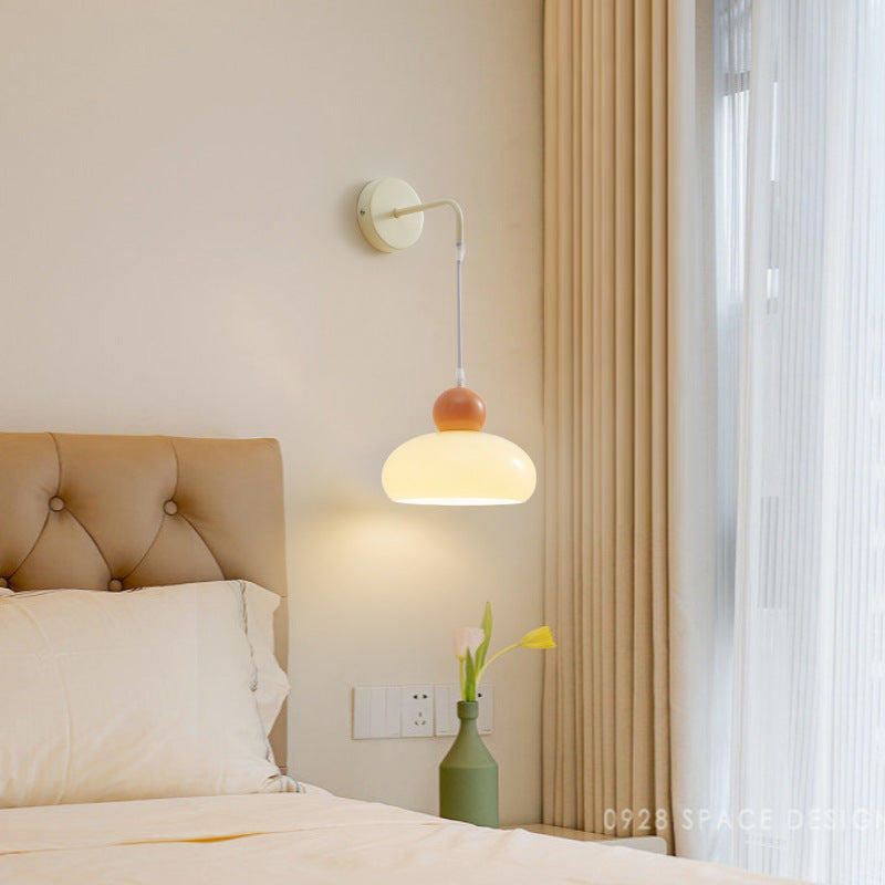 Modern Minimalist Cream Dome Round Iron Glass 1-Light Wall Sconce Lamp For Bedroom