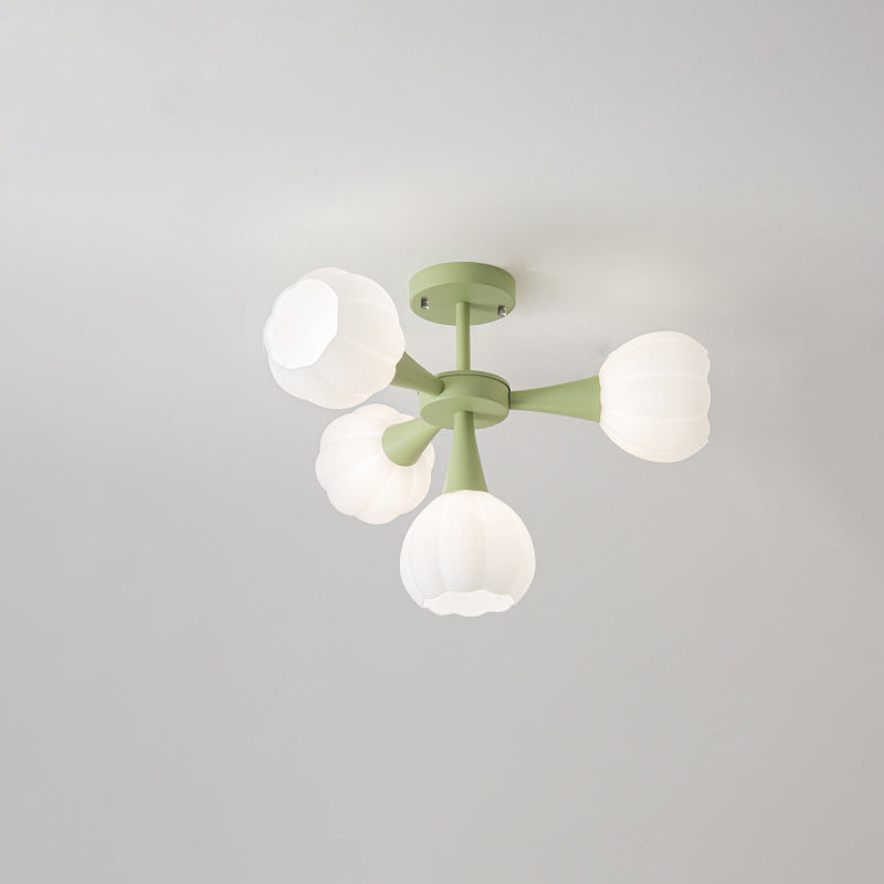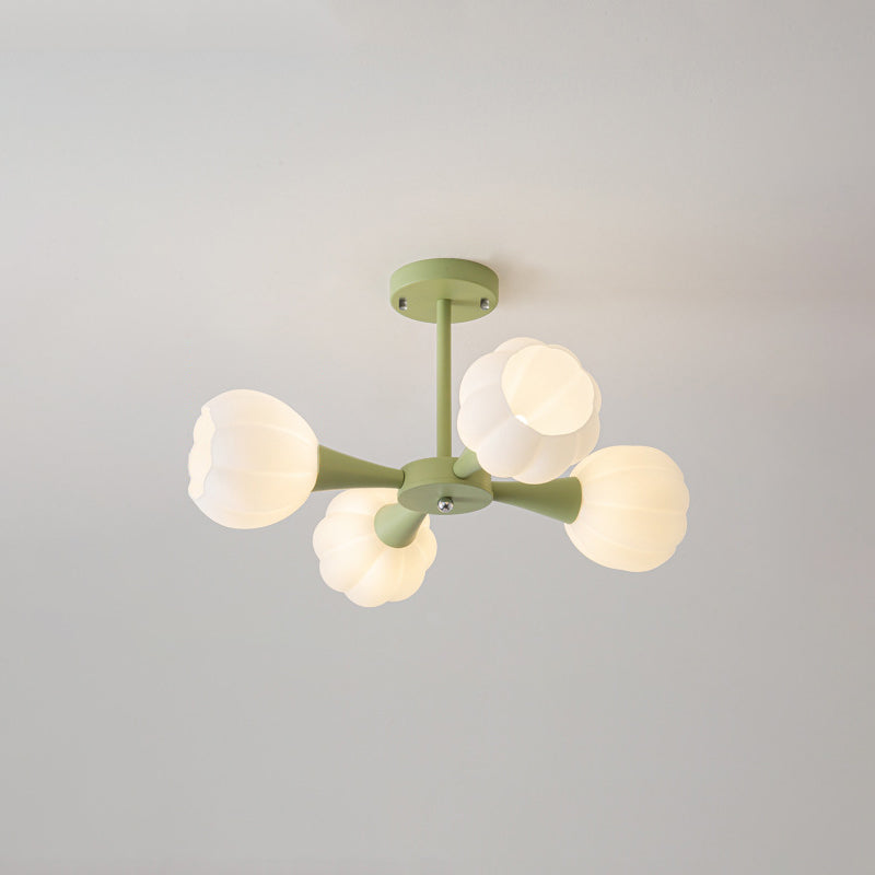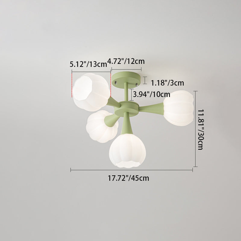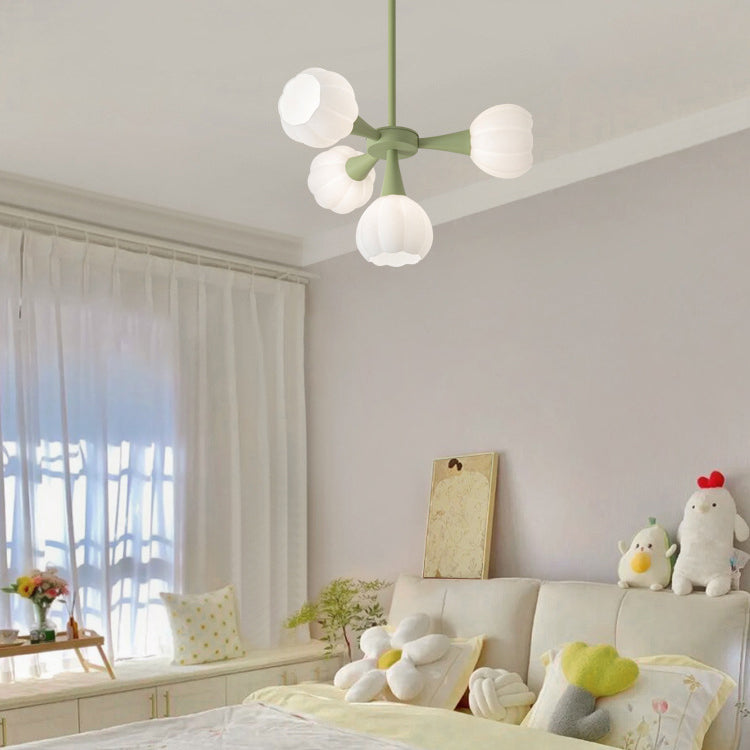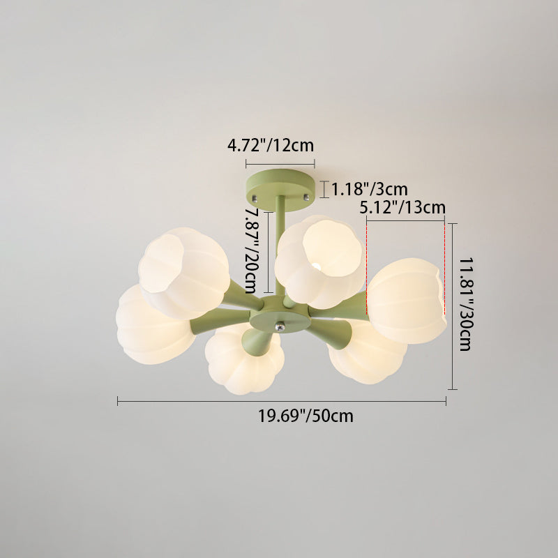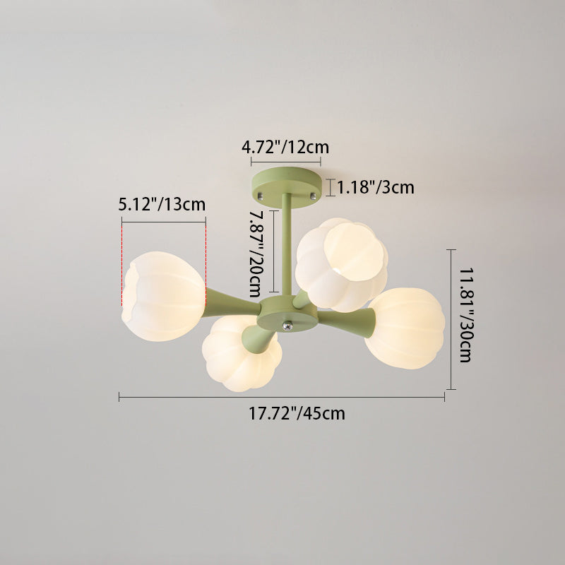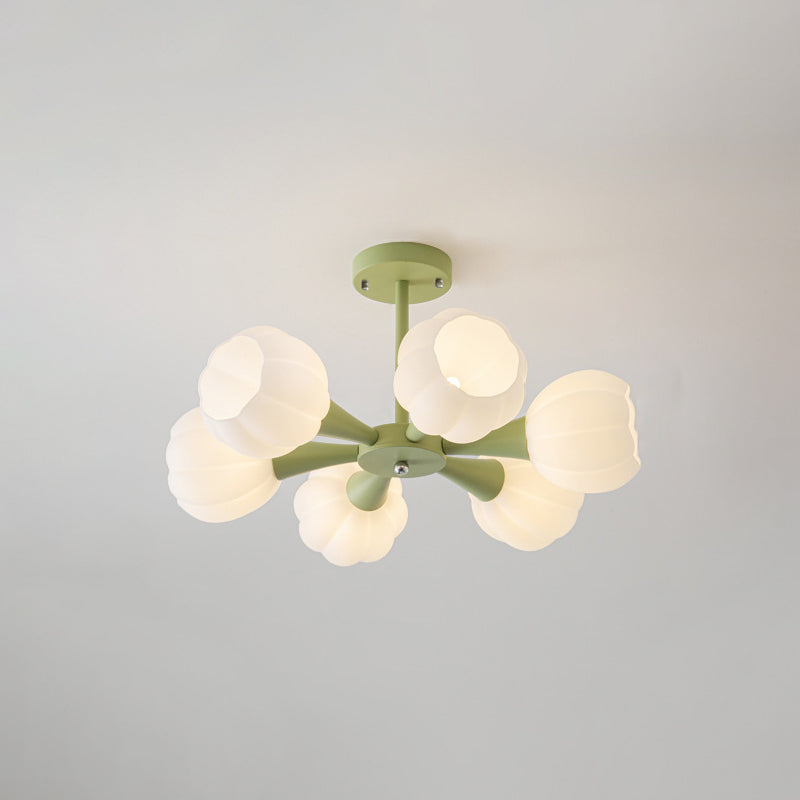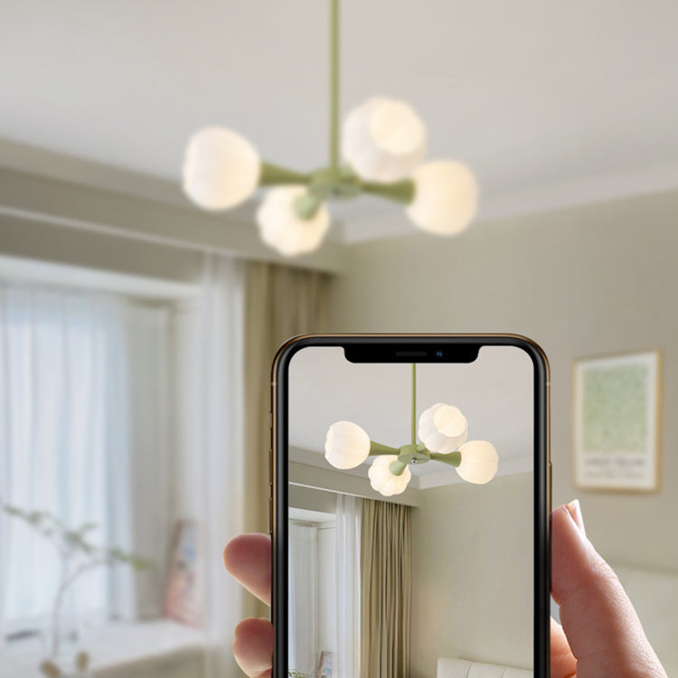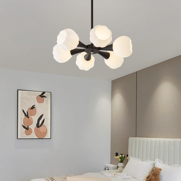 Modern Minimalist Cream Flower Iron Glass 4/6 Light Chandelier For Living Room