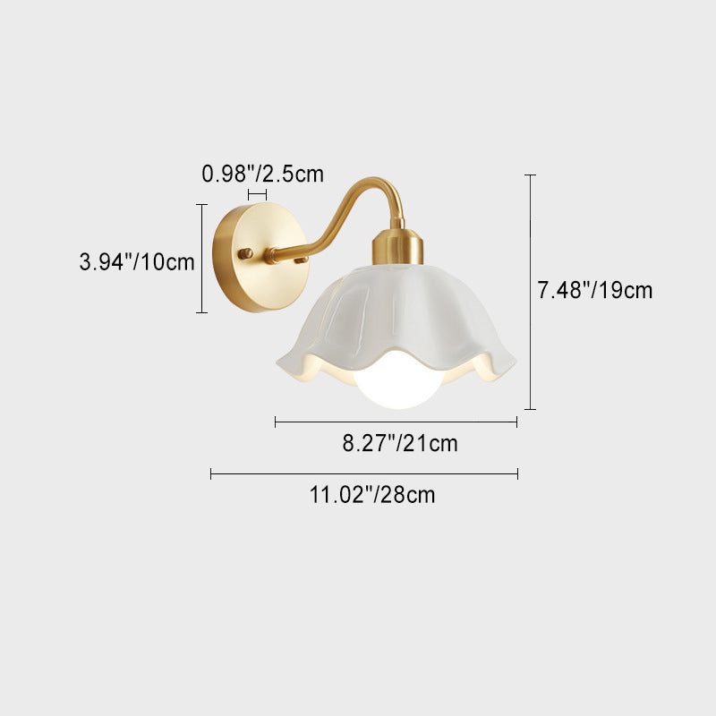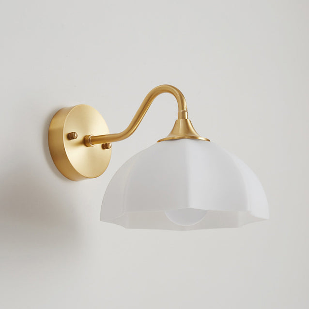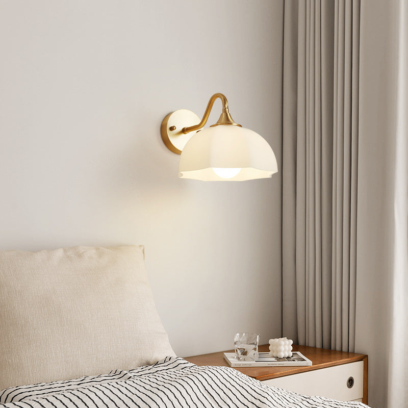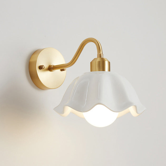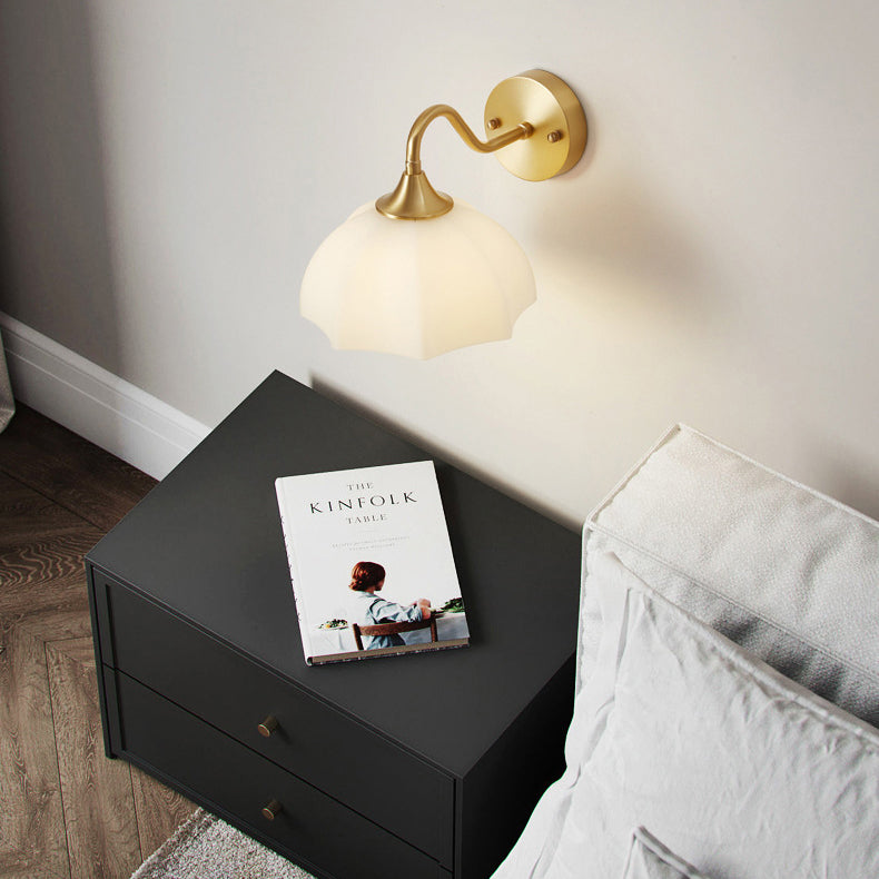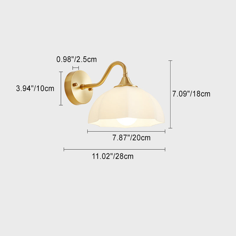 Modern Minimalist Cream Flower Pod All Copper Glass 1-Light Wall Sconce Lamp For Bedroom