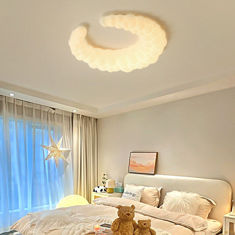 Modern Minimalist Crescent PE Iron LED Flush Mount Ceiling Light For Bedroom