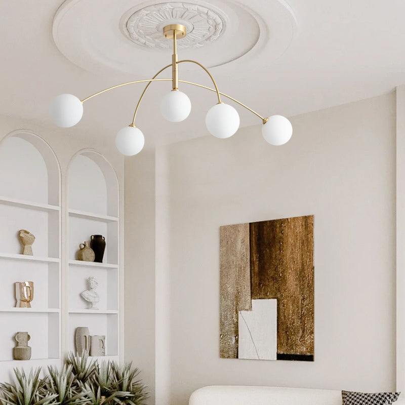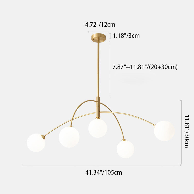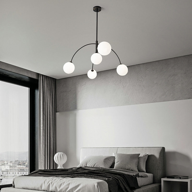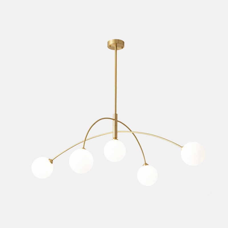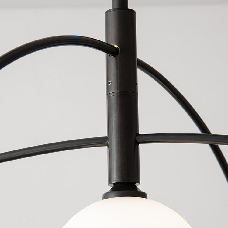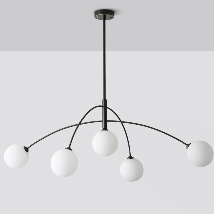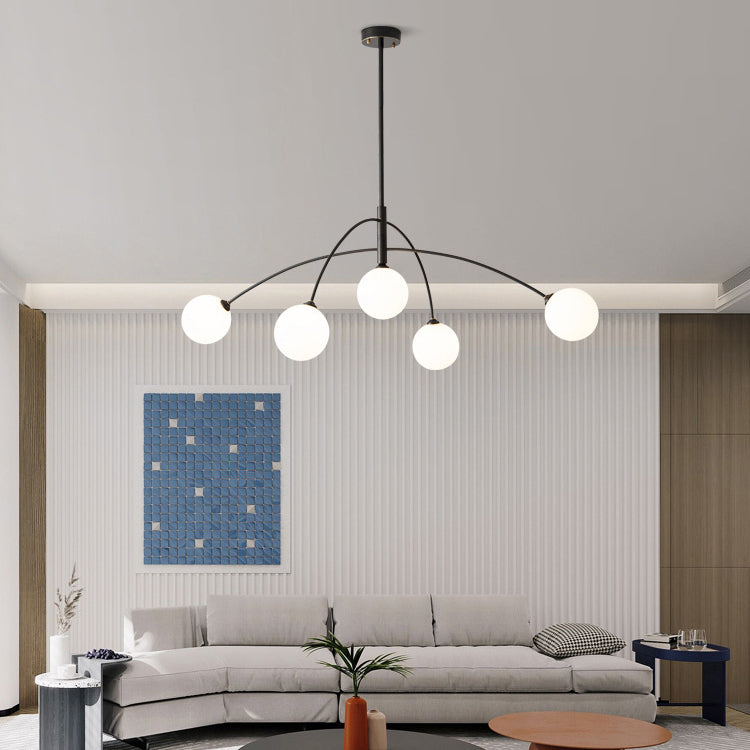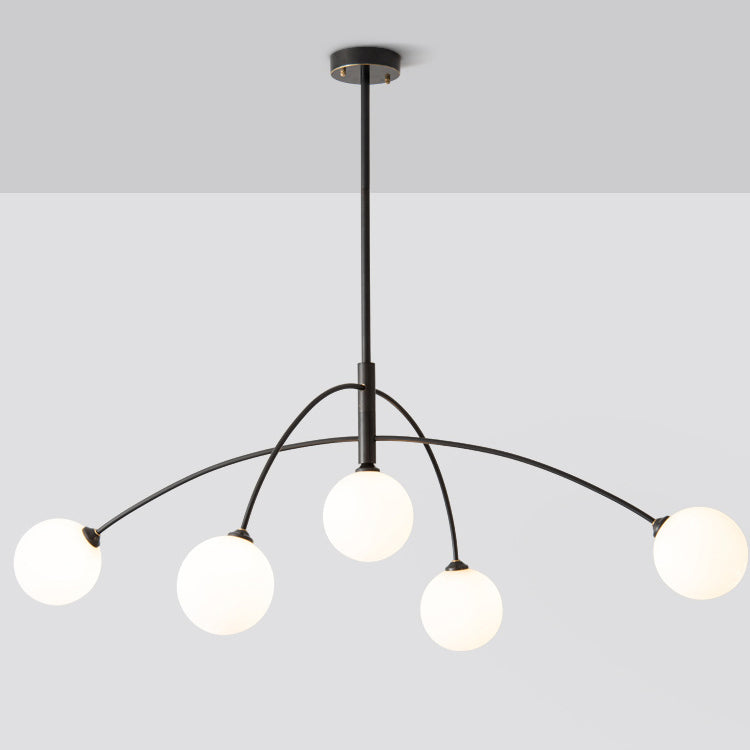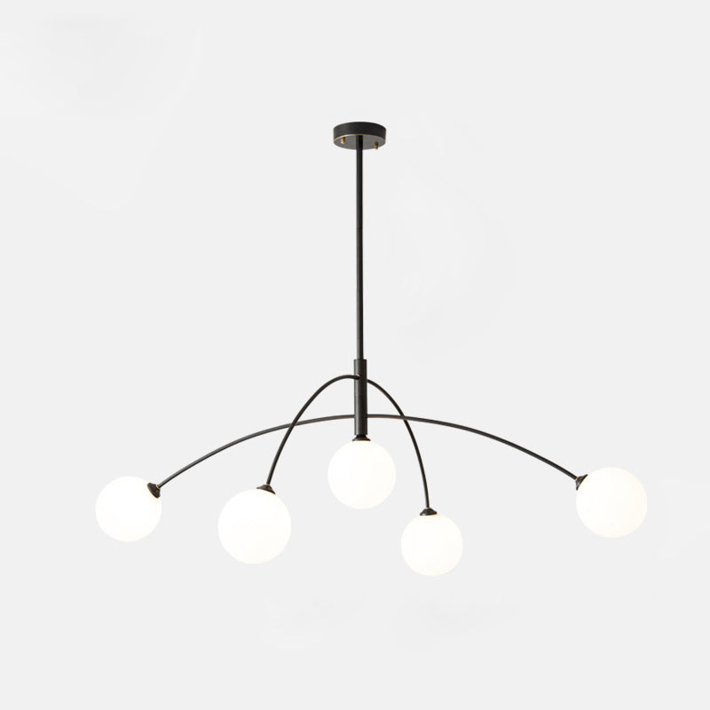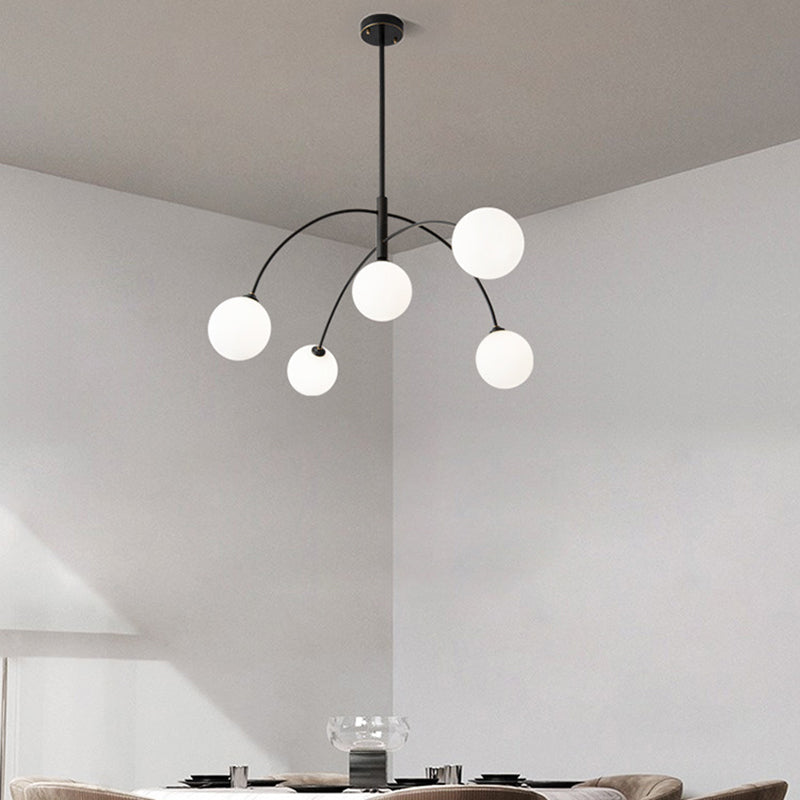 Modern Minimalist Curved Line Orb Iron Glass 5-Light Chandelier For Living Room
