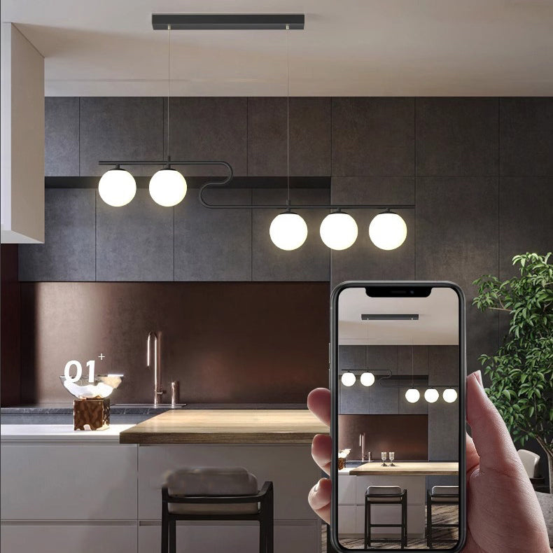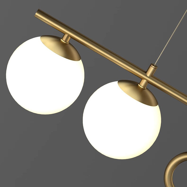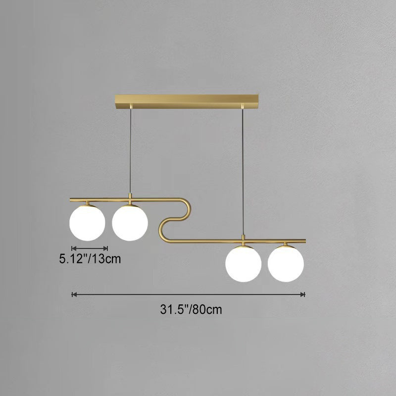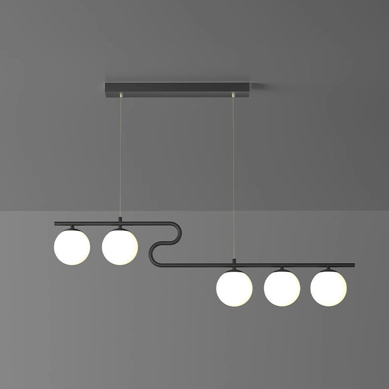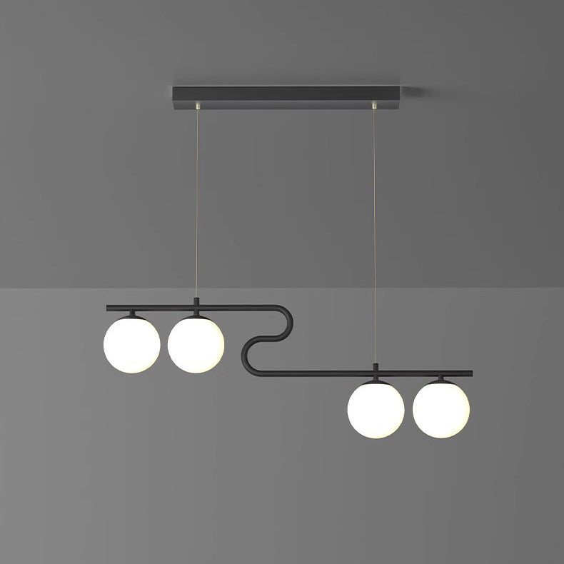Modern Minimalist Curved Line Orb Shade Iron Frame Glass 4/5 Light Island Light Chandelier For Dining Room