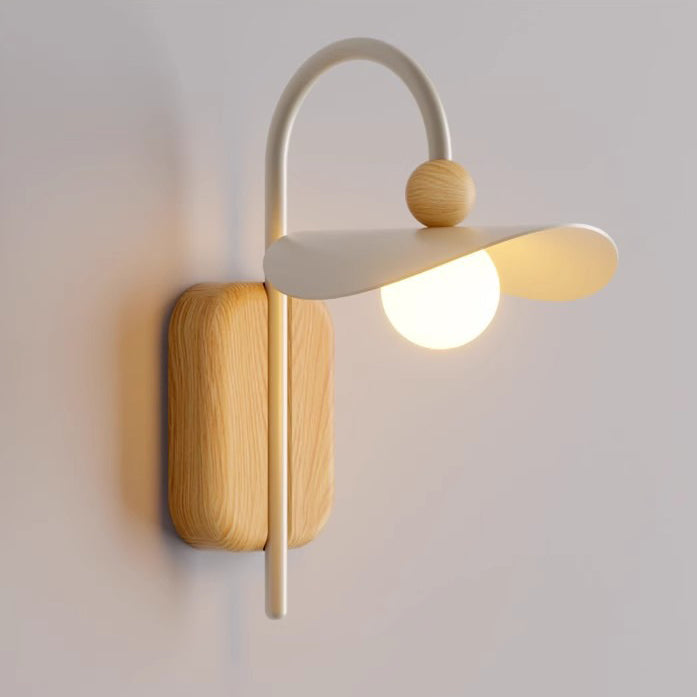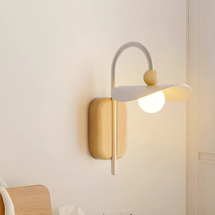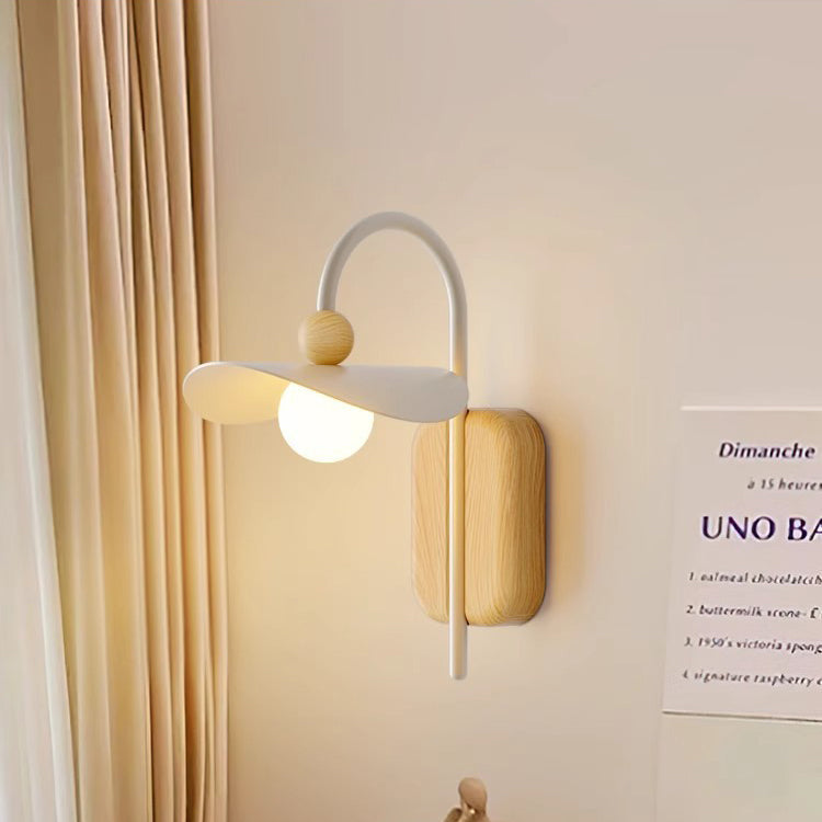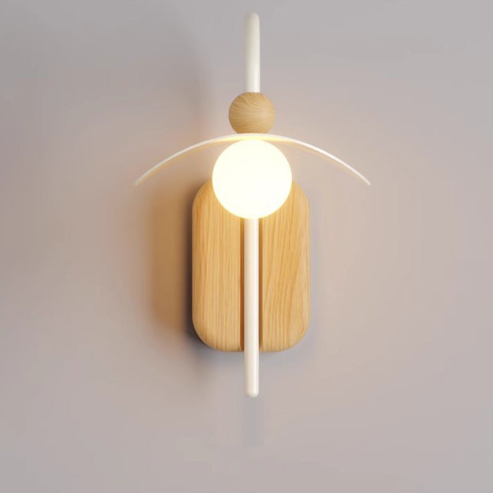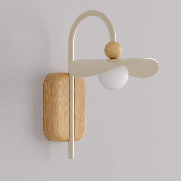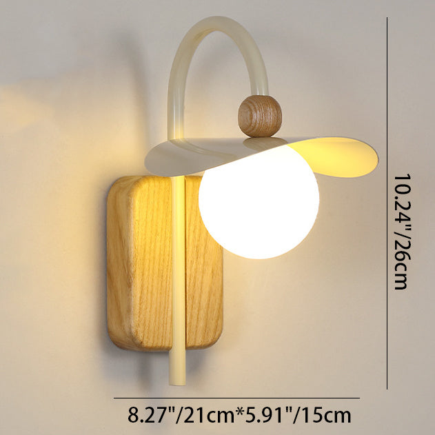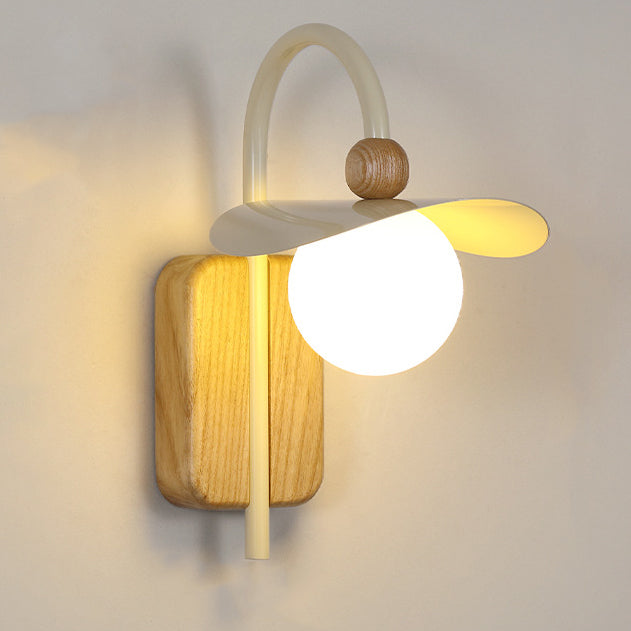 Modern Minimalist Curved Pole Round Globe Wood Iron Frame Glass Shade 1-Light Wall Sconce Lamp For Bedroom