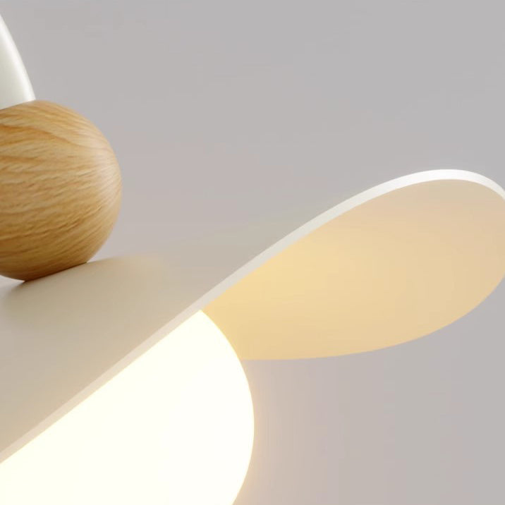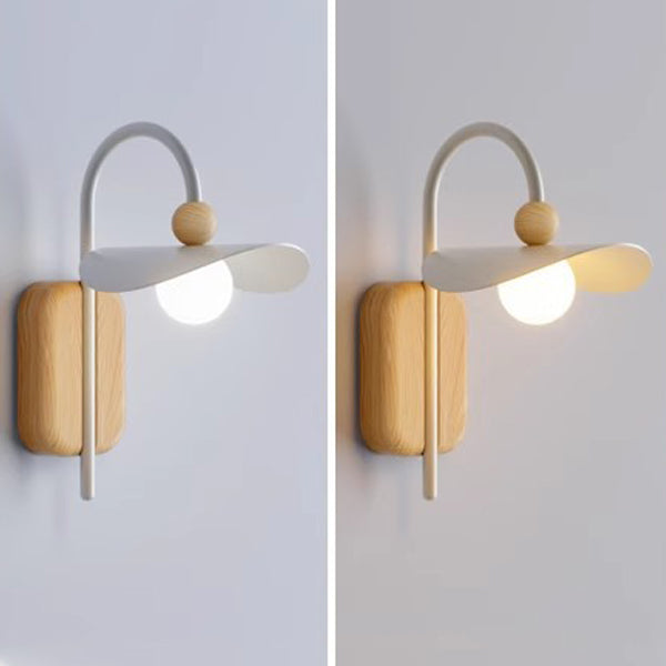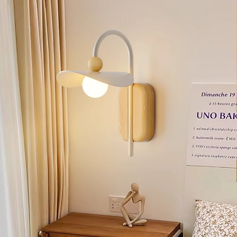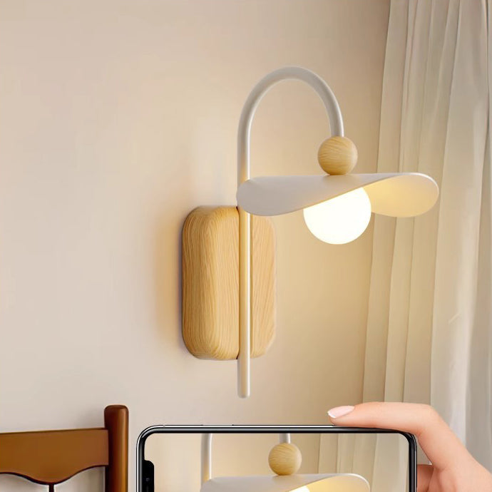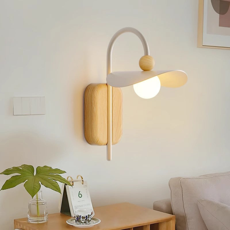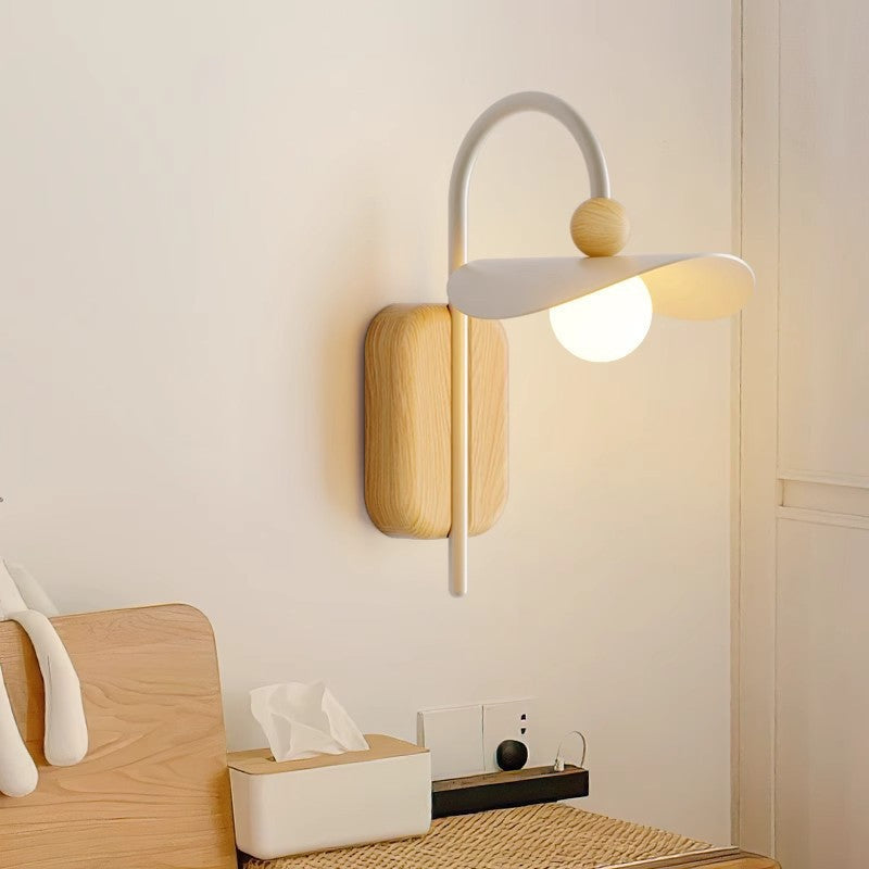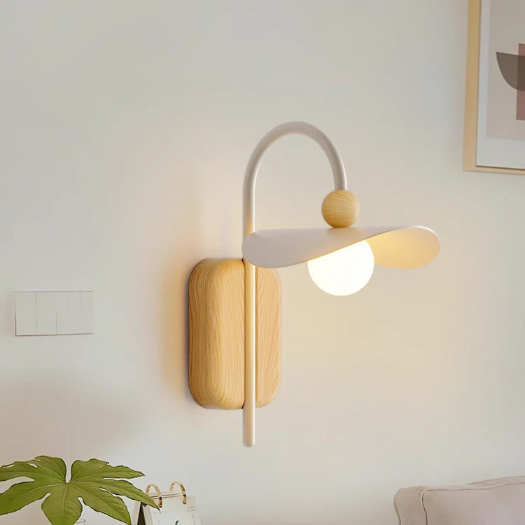 Modern Minimalist Curved Pole Round Globe Wood Iron Frame Glass Shade 1-Light Wall Sconce Lamp For Bedroom
