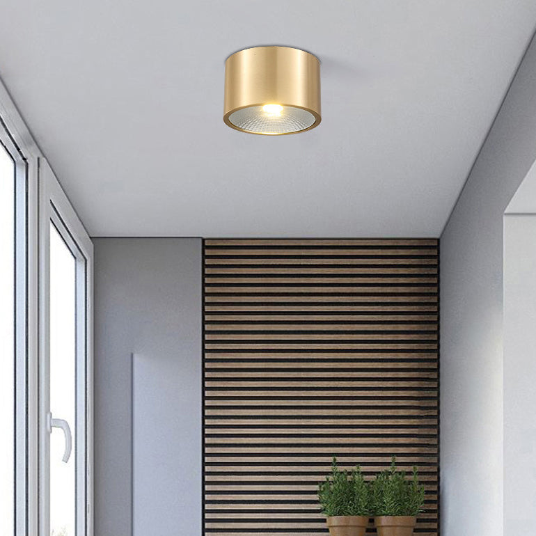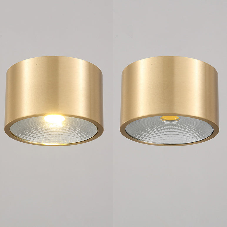 Modern Minimalist Cylinder Brass LED Flush Mount Ceiling Light For Living Room