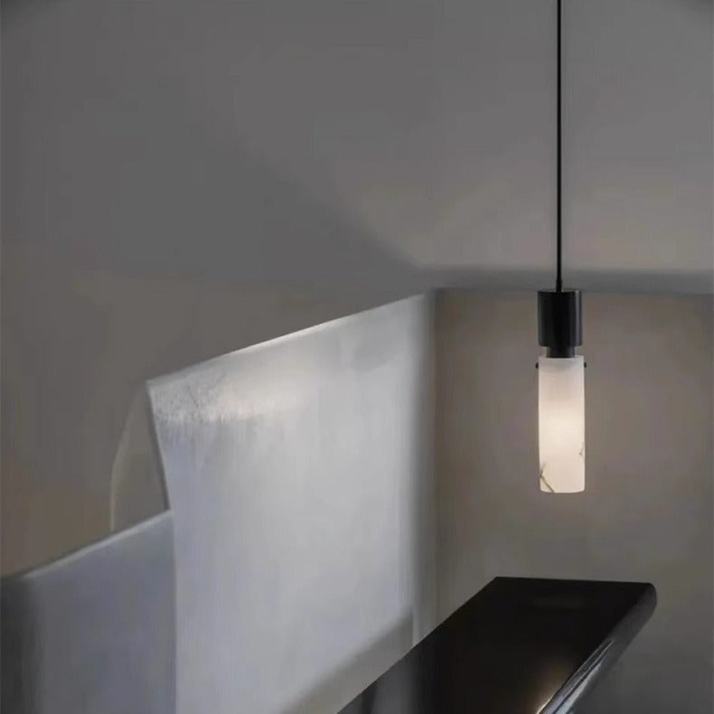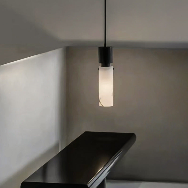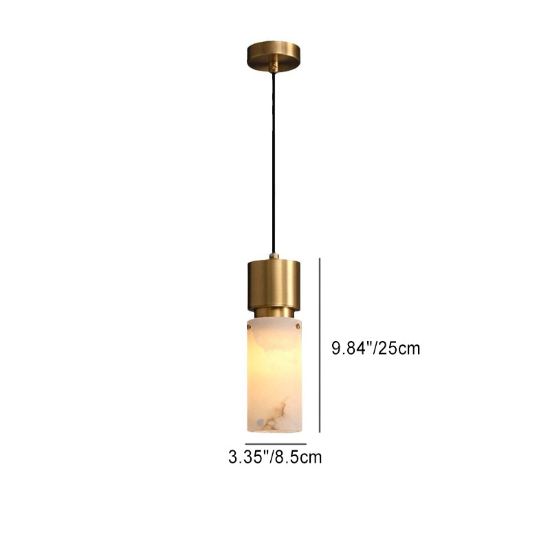 Modern Minimalist Cylinder Copper Marble 1-Light Pendant Light For Bedroom