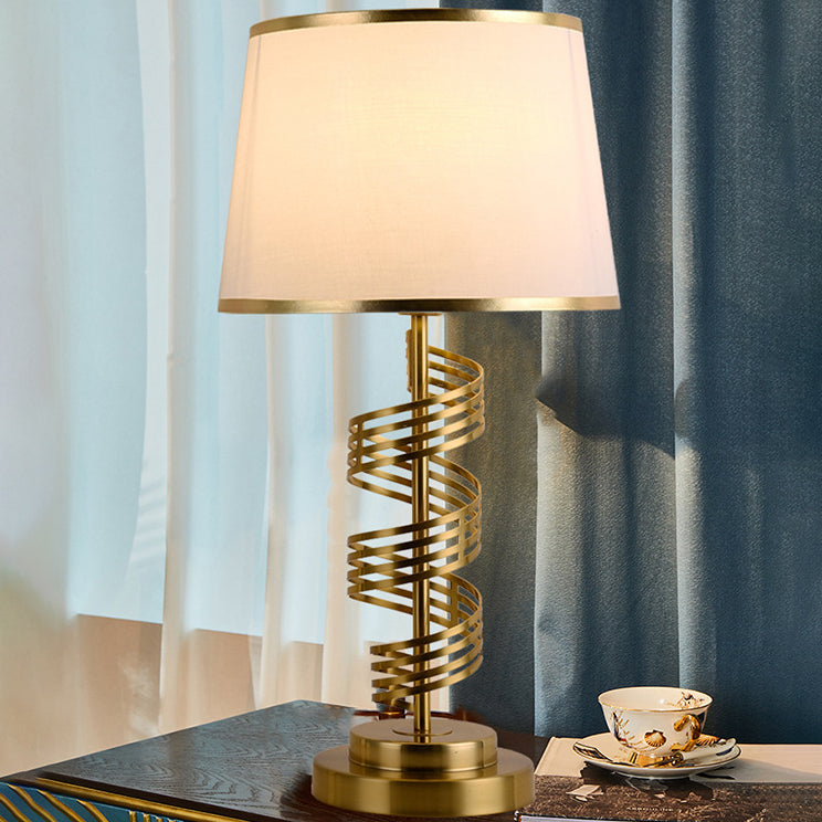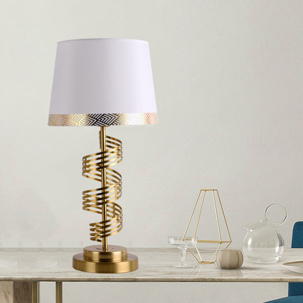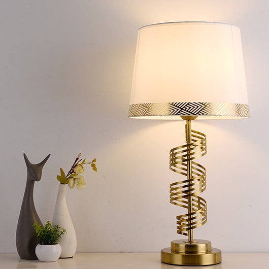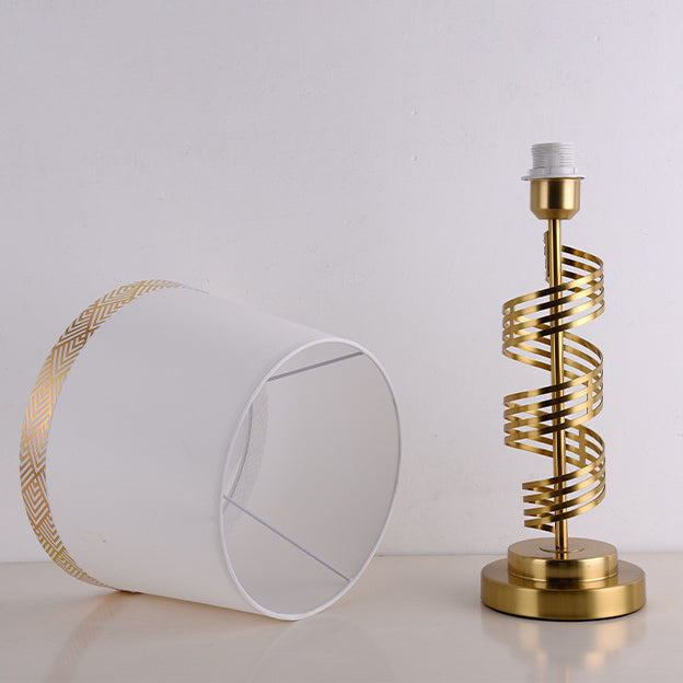 Modern Minimalist Cylinder Iron Fabric 1-Light Table Lamp For Bedroom