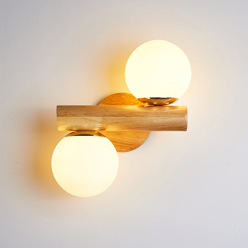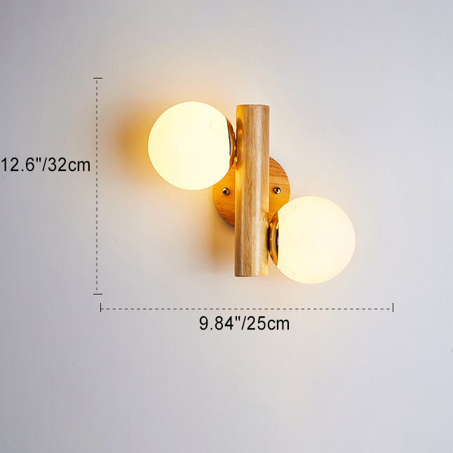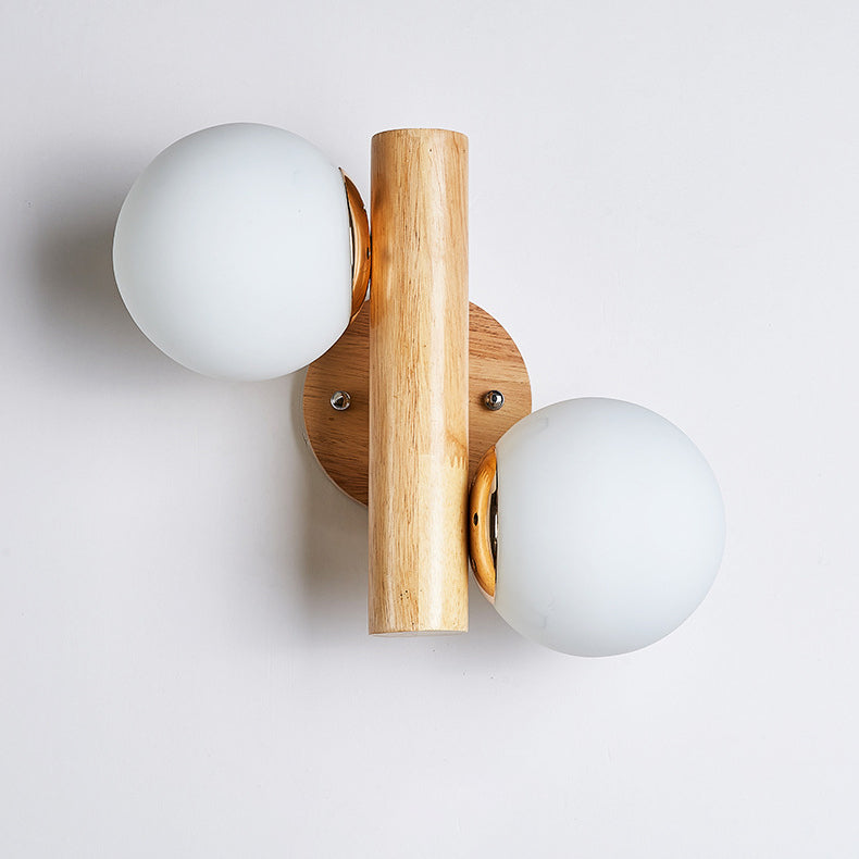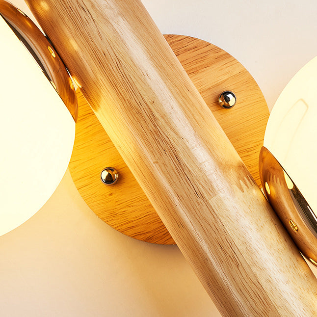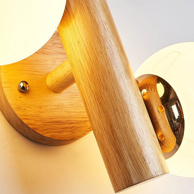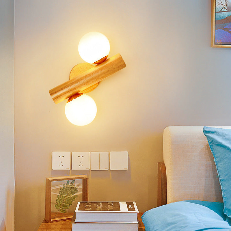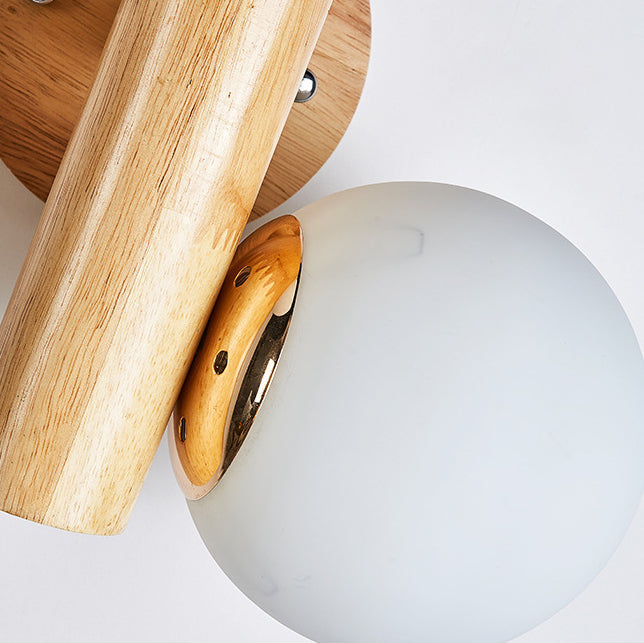 Modern Minimalist Cylinder Orb Wood Hardware Glass 2-Light Wall Sconce Lamp For Bedroom