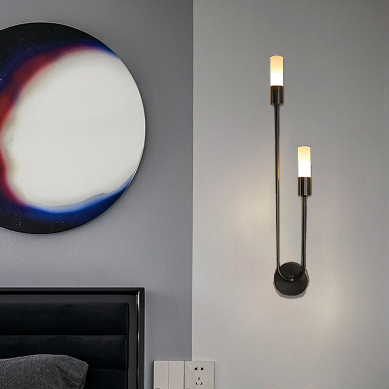 Modern Minimalist Cylindrical Iron Acrylic 2-Light Wall Sconce Lamp For Bedroom