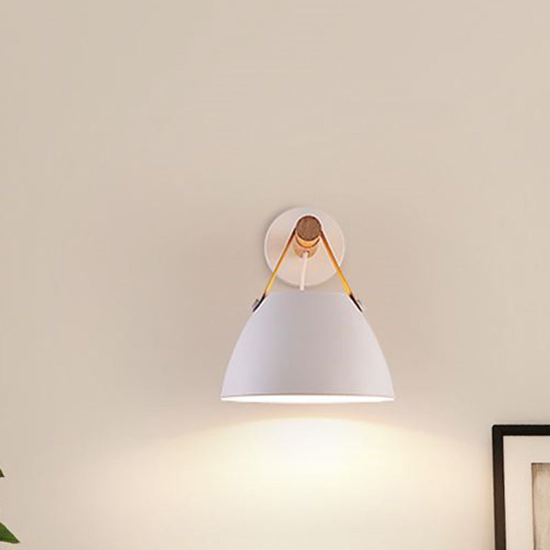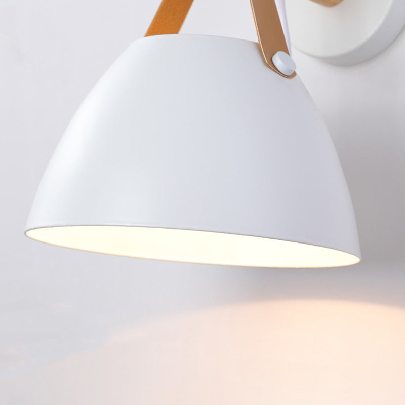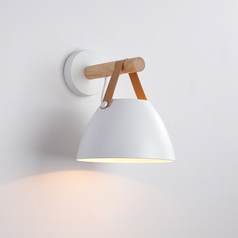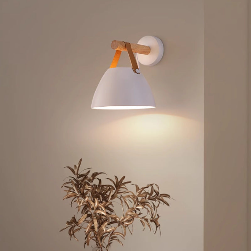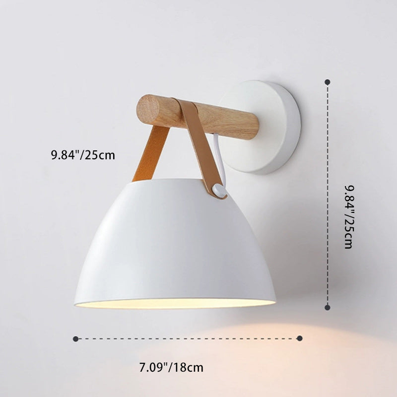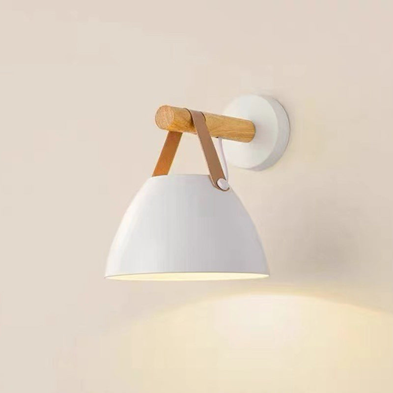 Modern Minimalist Dome Iron Rubberwood 1-Light Wall Sconce Lamp For Bedroom