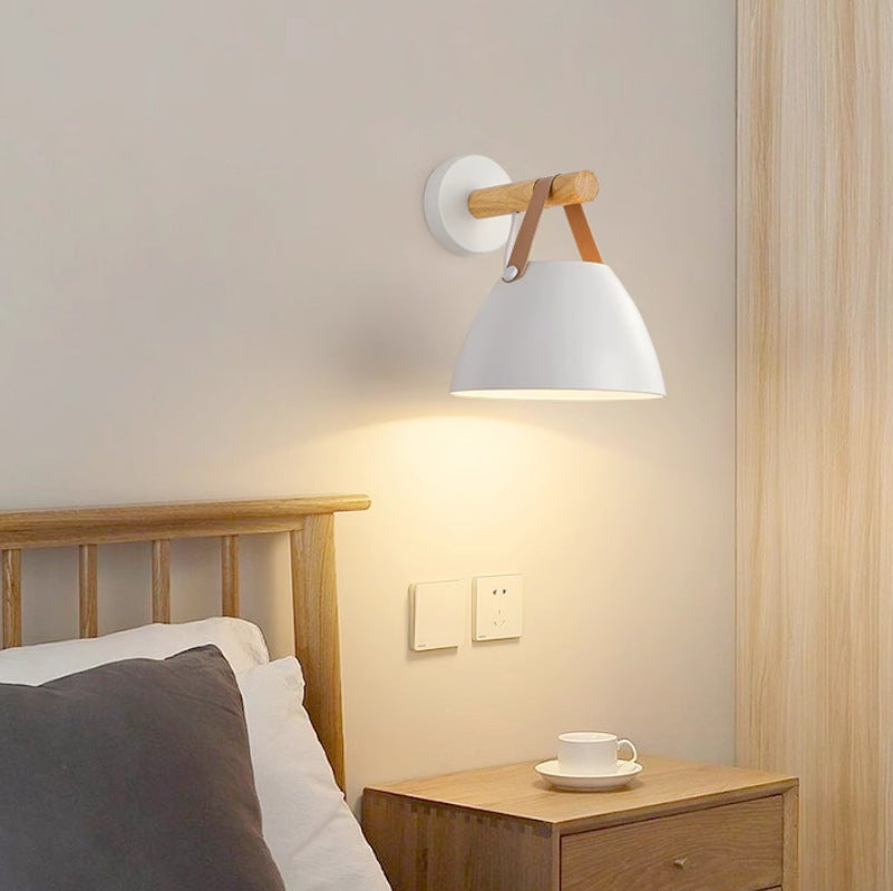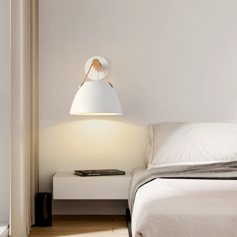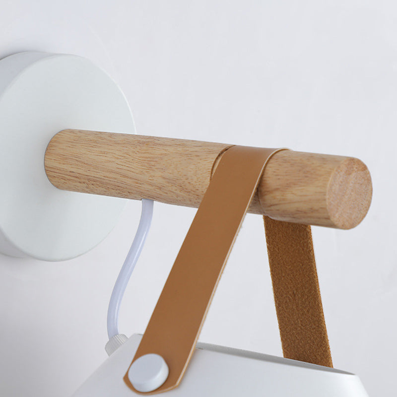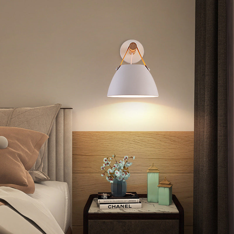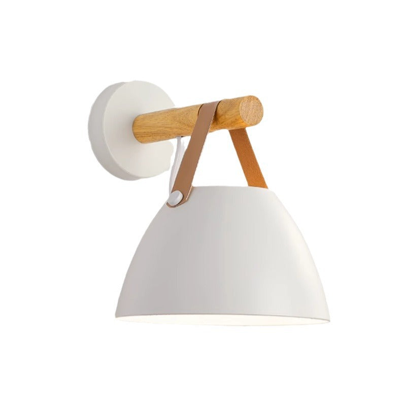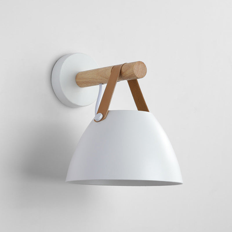 Modern Minimalist Dome Iron Rubberwood 1-Light Wall Sconce Lamp For Bedroom