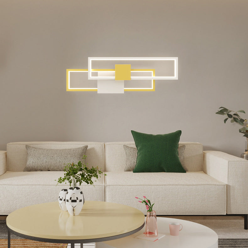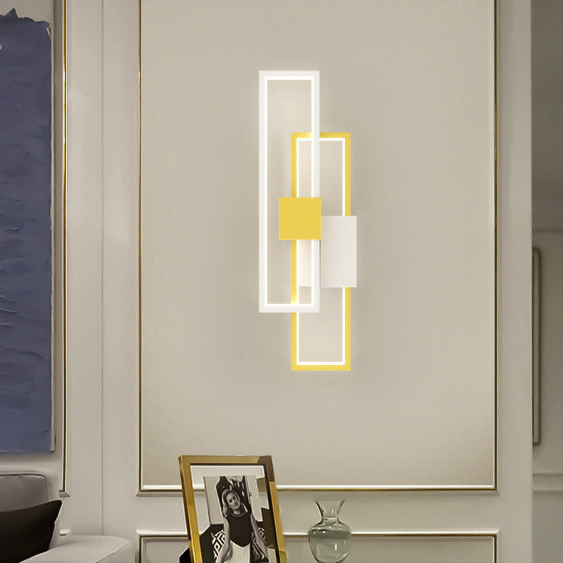 Modern Minimalist Double Rectangle Aluminum Iron Silicone LED Wall Sconce Lamp For Living Room