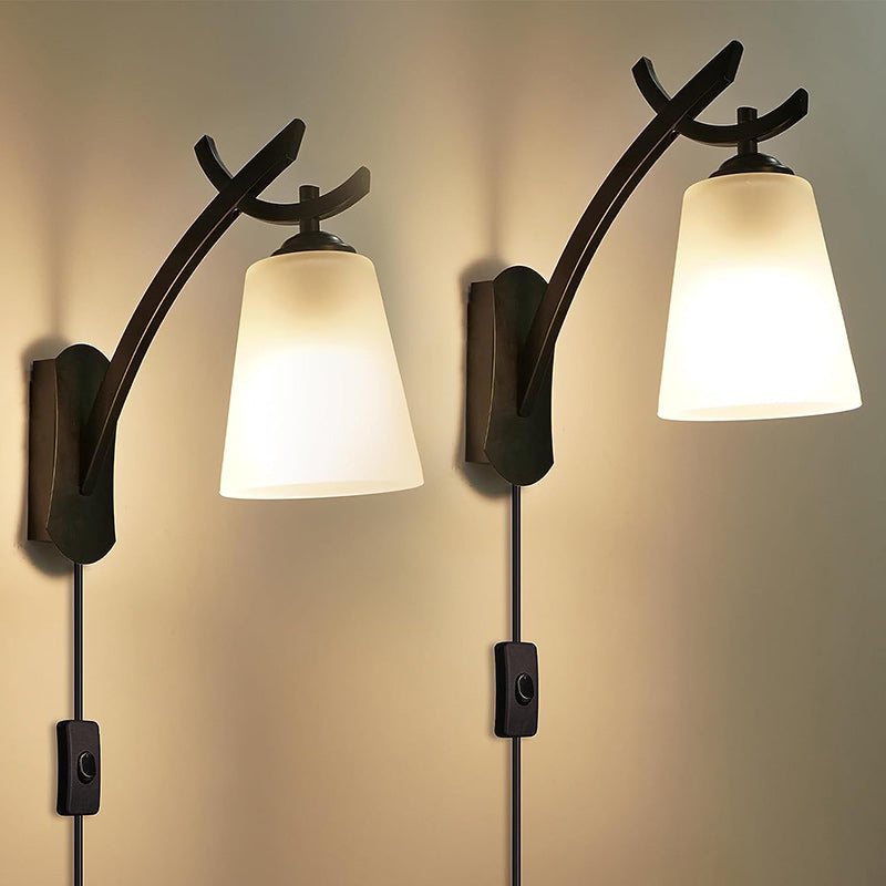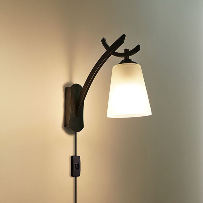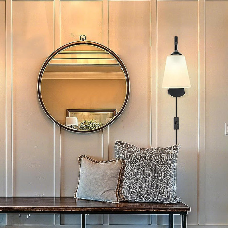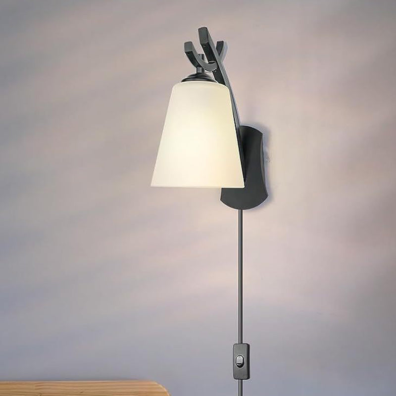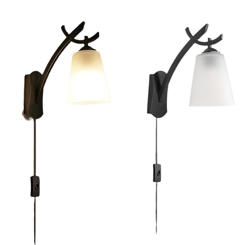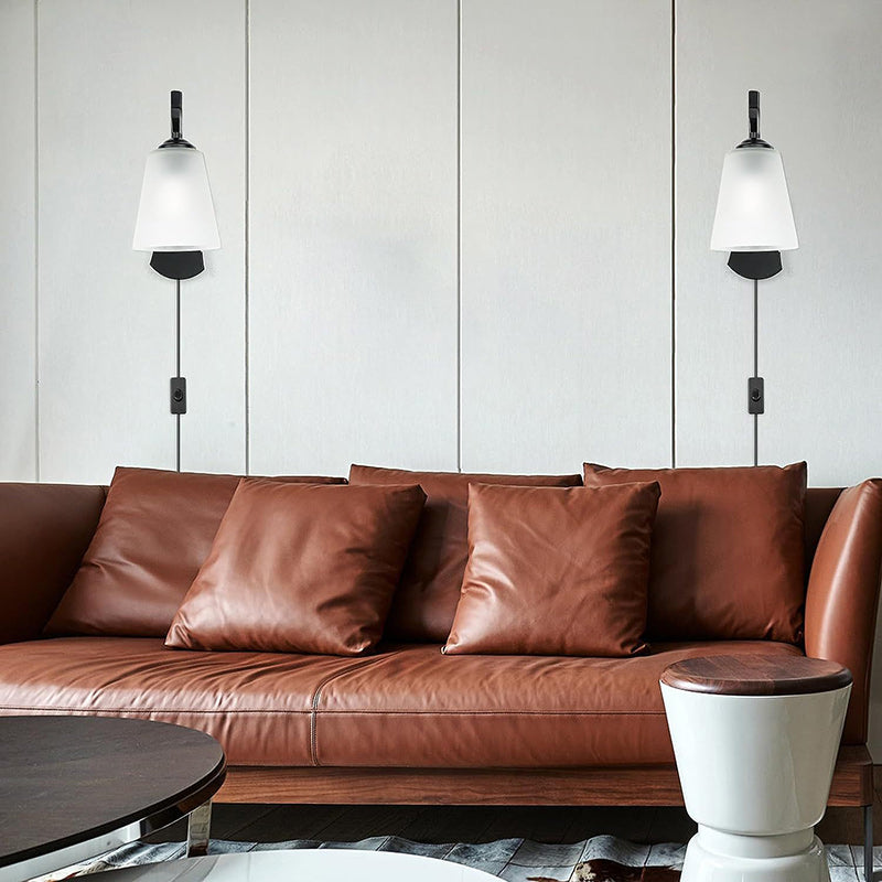 Modern Minimalist Drum Iron Glass 1-Light Wall Sconce Lamp For Living Room