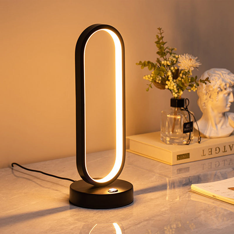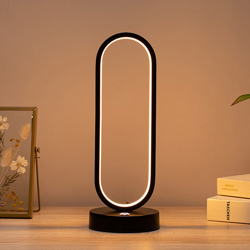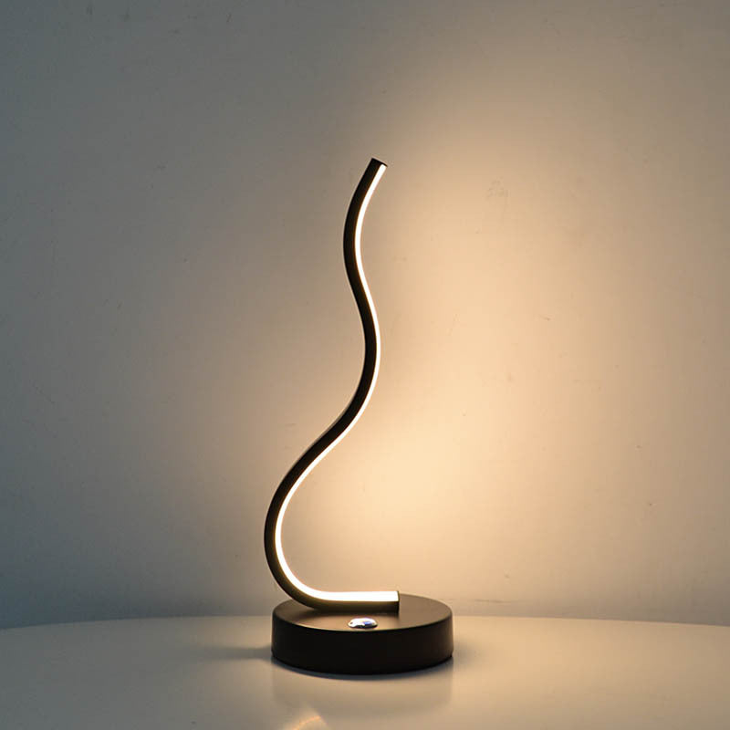 Modern Minimalist Ellipse S Shape Iron Aluminum Silicone LED Table Lamp For Bedroom