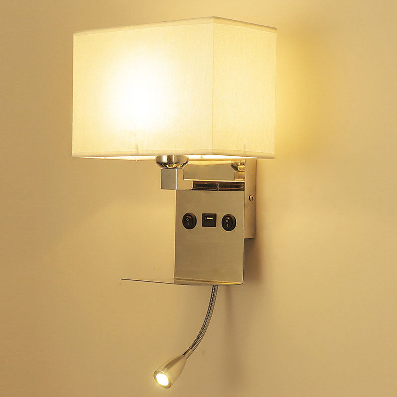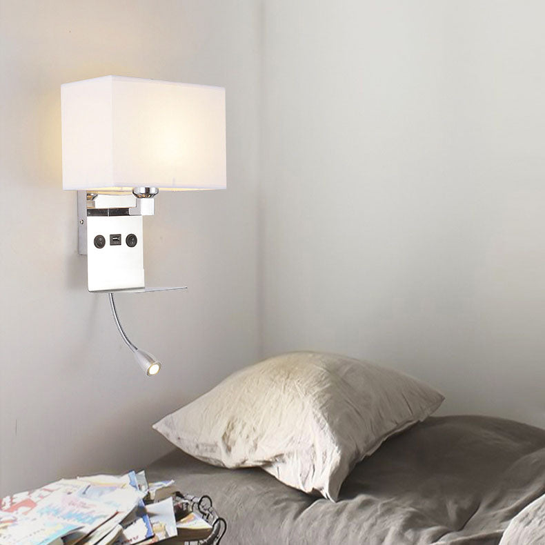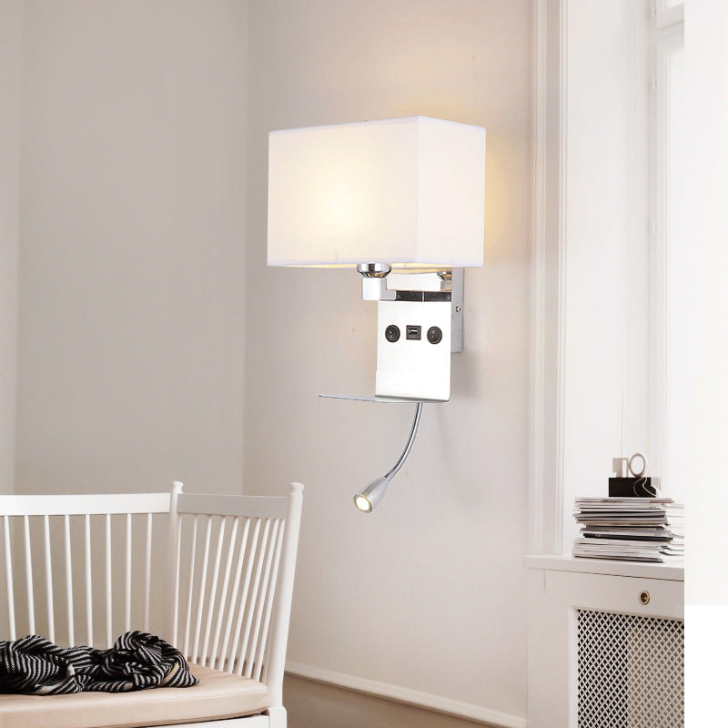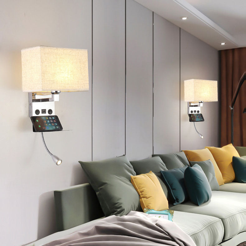 Modern Minimalist Fabric Square Spotlight 2-Light Wall Sconce Lamp For Bedroom
