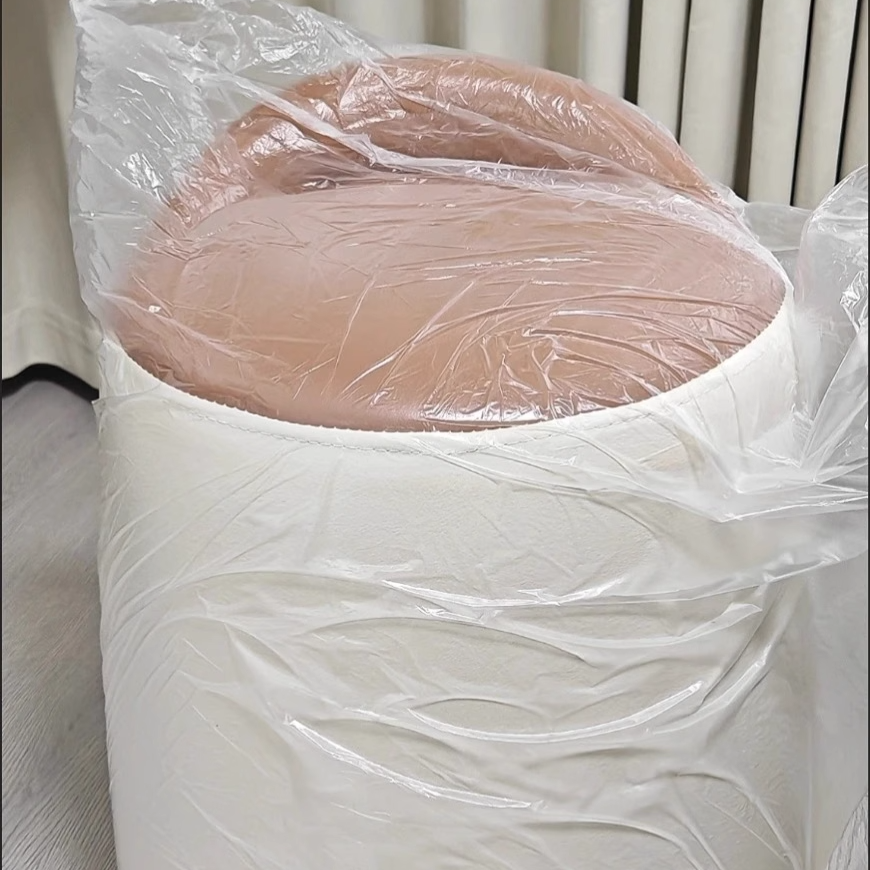 Modern Minimalist Faux Leather & Wood Cylindrical Vanity Stool For Bedroom & Living Room