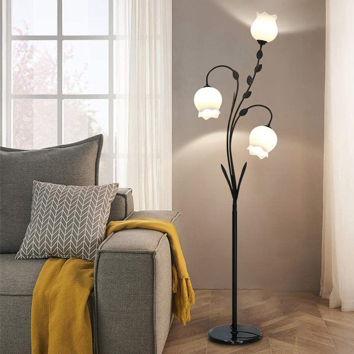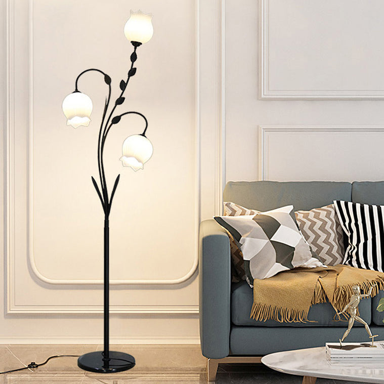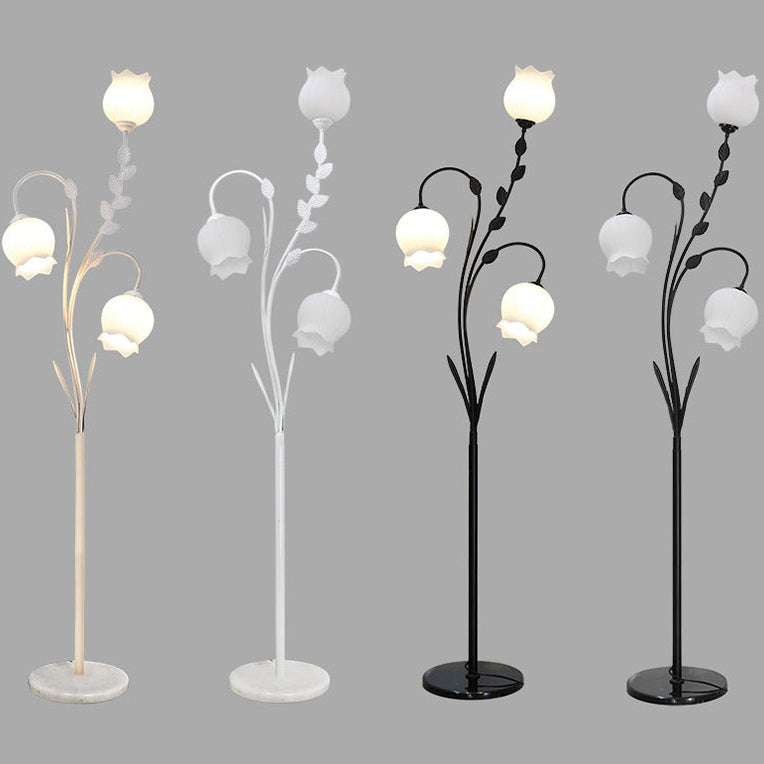 Modern Minimalist Flower-Shaped Iron Glass 3-Light Standing Floor Lamp For Living Room