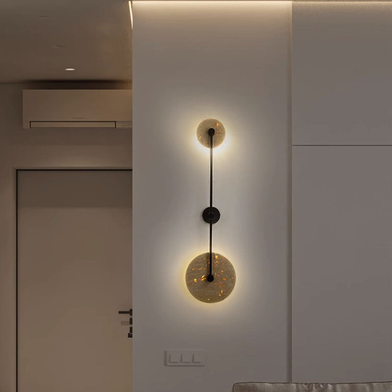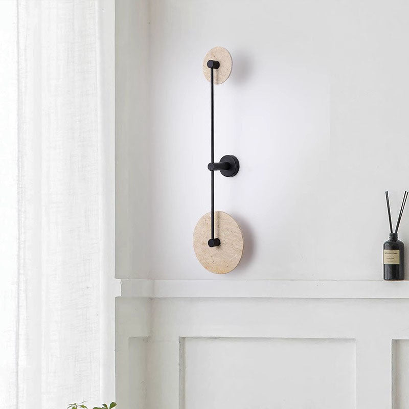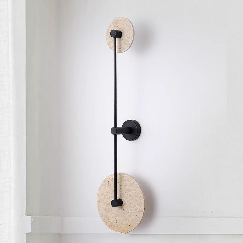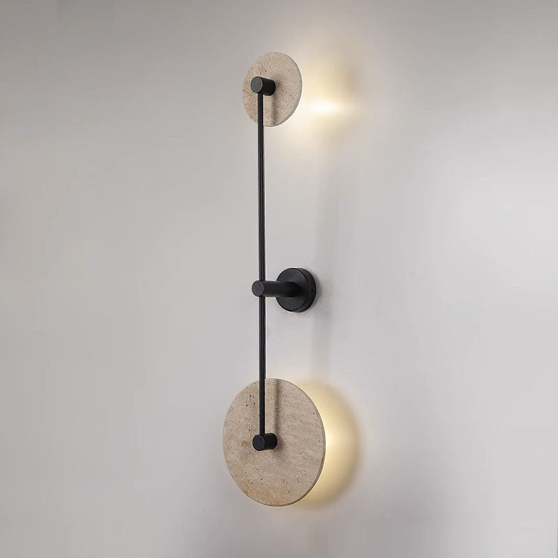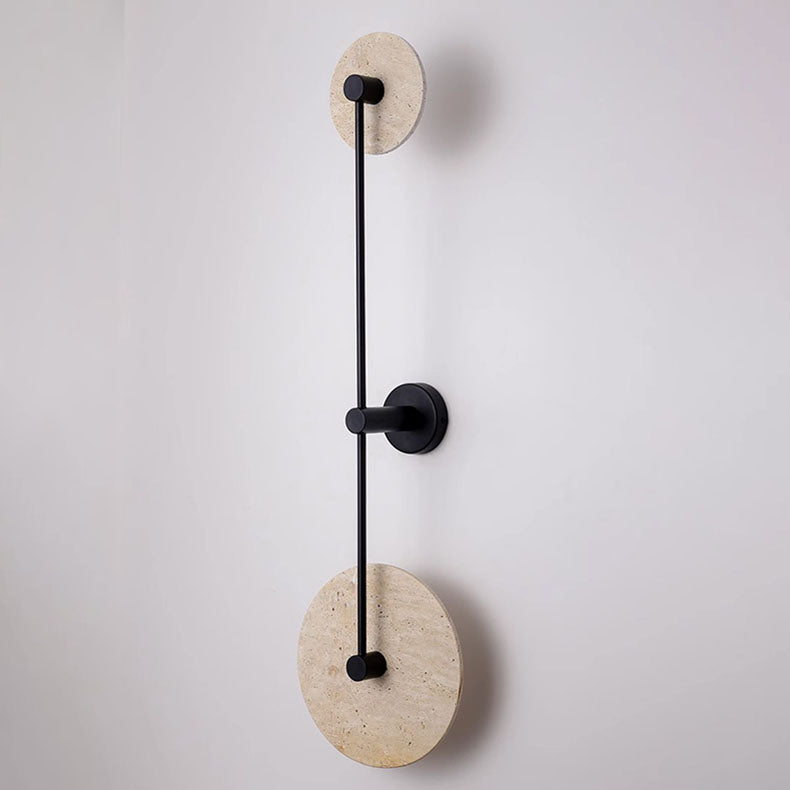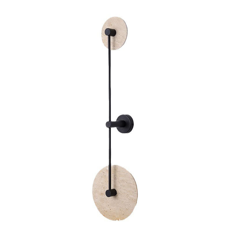 Modern Minimalist Geometric Circle Travertine Iron 2-Light Wall Sconce Lamp For Bedroom