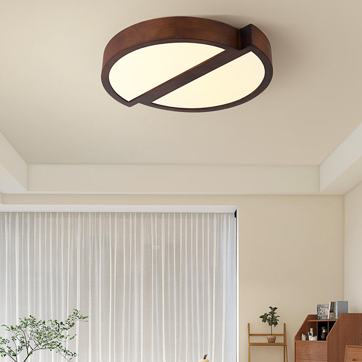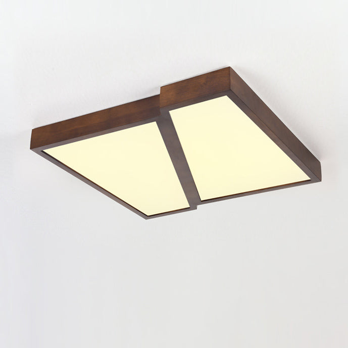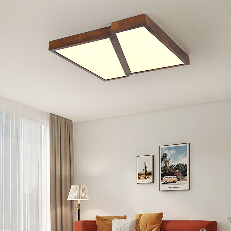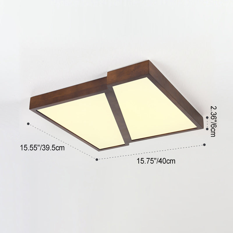 Modern Minimalist Geometric Square Iron Wood LED Flush Mount Ceiling Light For Living Room