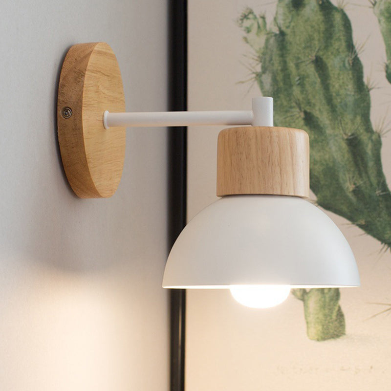 Modern Minimalist Half Round Cylinder Bird Disc Base Iron Solid Wood Resin 1-Light Wall Sconce Lamp For Bedroom