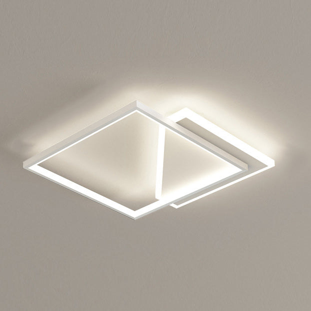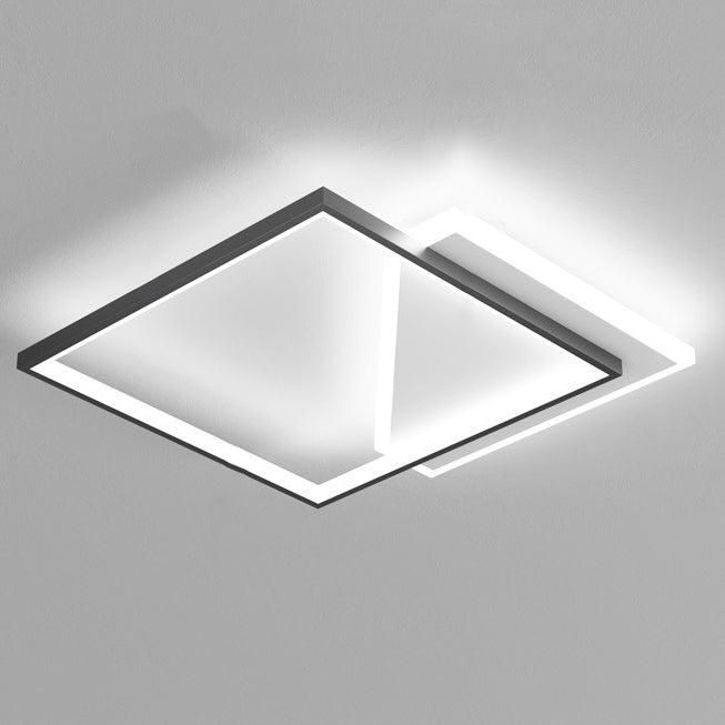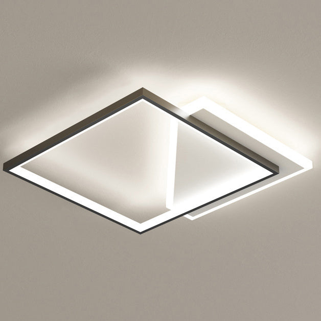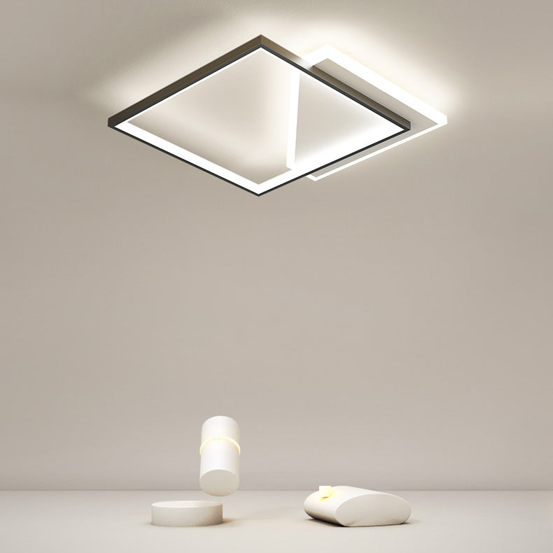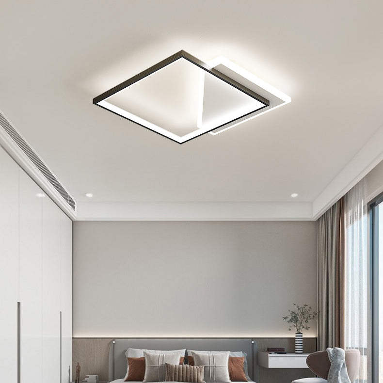 Modern Minimalist Iron Acrylic Hollowed Square Geometrical LED Flush Mount Ceiling Light For Bedroom