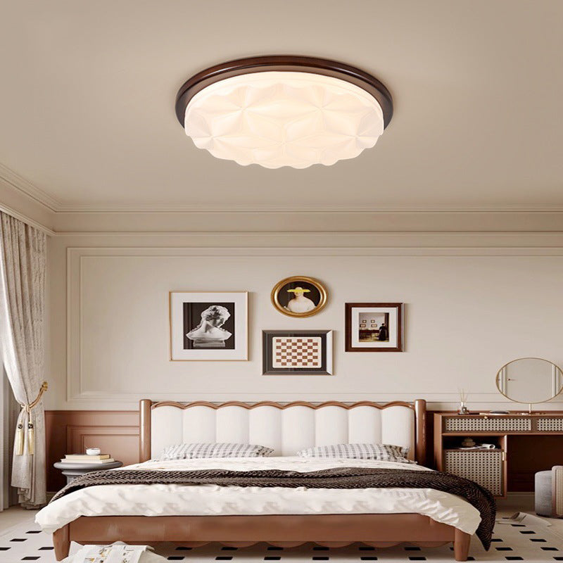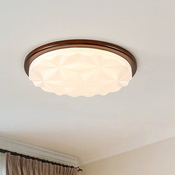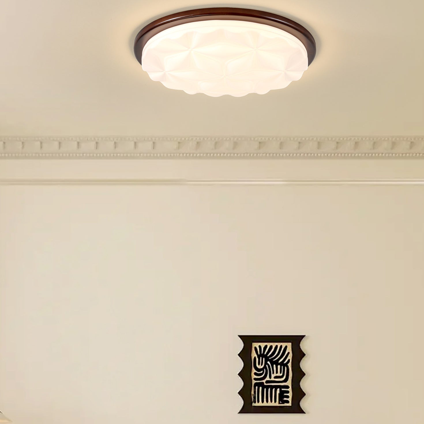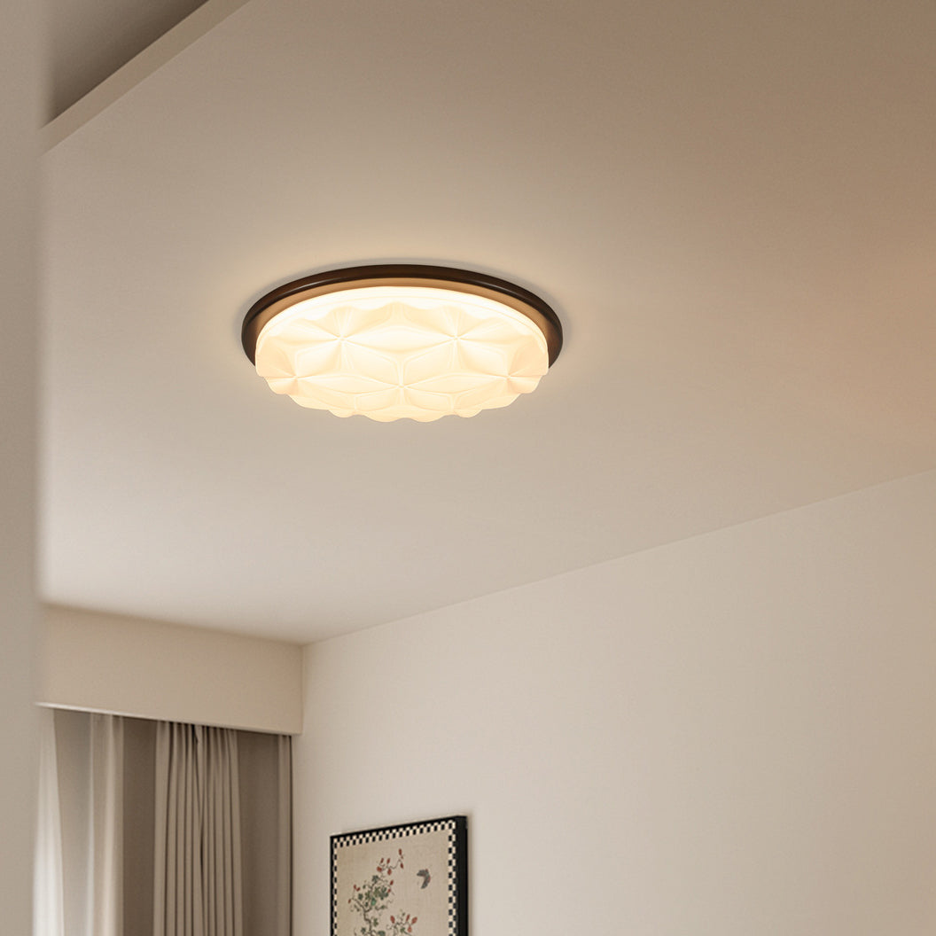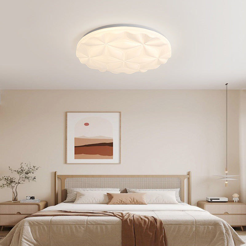 Modern Minimalist Iron And Acrylic Round Leaf-Textured LED Flush Mount Ceiling Light For Living Room And Bedroom