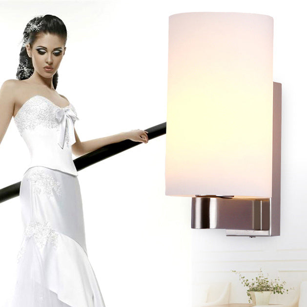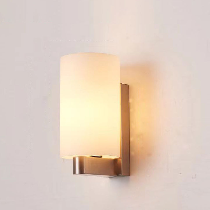 Modern Minimalist Iron Glass Cylinder 1-Light Wall Sconce Lamp For Hallway
